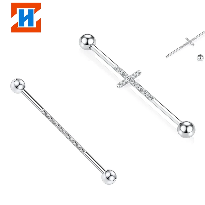 Пирсинг из хирургической стали внутренняя резьба кубический циркон крест хряща уха 14 г промышленный штанга имплантата пирсинг тела ювелирные изделия