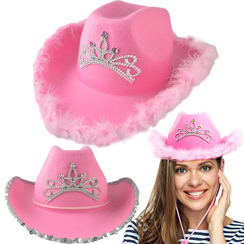 Корона, розовая ковбойская шляпа, западная ковбойская шляпа для жен...