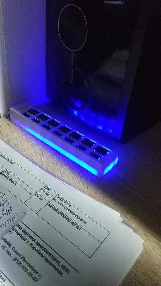 хаб работает, и выключатели и подсветка, но все равно немного слабоватый он, поскрипывает пластик. Однако с другим старым хабом у меня вентиляторы обдува потребляют 0.3А, а с этим 0.5А.