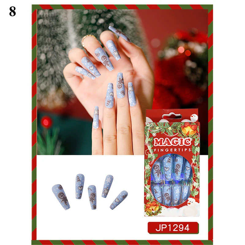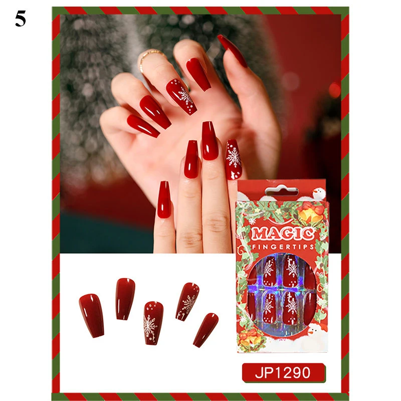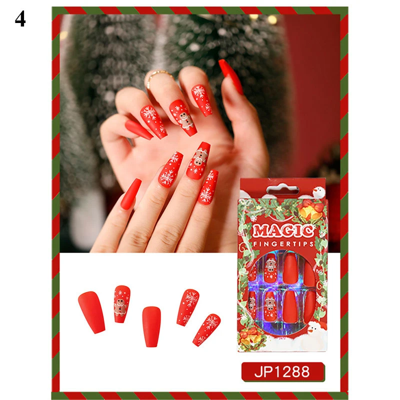 24 шт.корт. Рождественские накладные ногти в гробе накладные ногти Рождественский узор балерина Маникюр полное покрытие съемные ногти накладные ногти