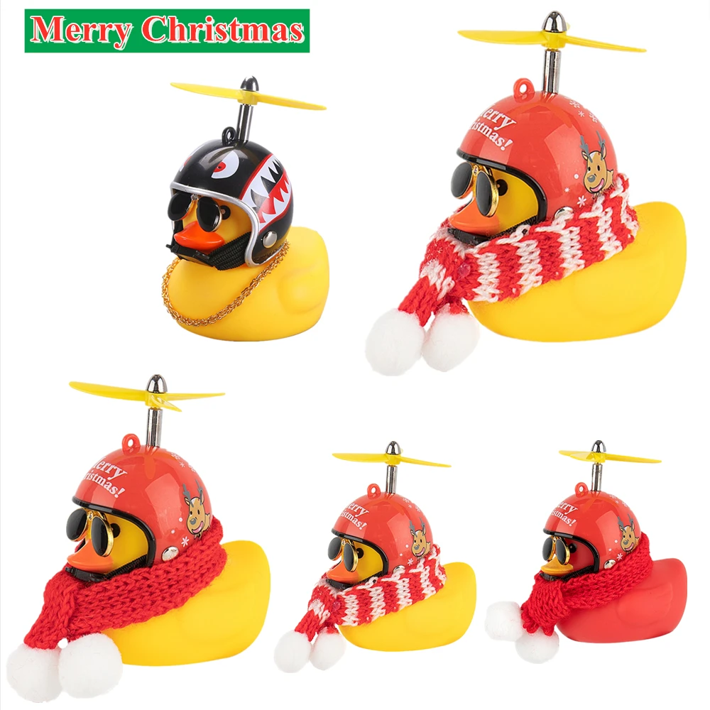 2. Уникальный дизайн: это украшение из желтой утки оснащено интересными шлемами, очками, ожерельями, двусторонней лентой, ремнями и огнями.