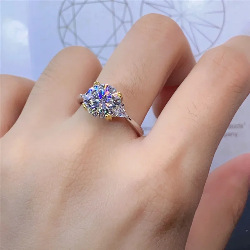 Кольцо Geoki с муассанитом, круглые ювелирные украшения с круглым з...