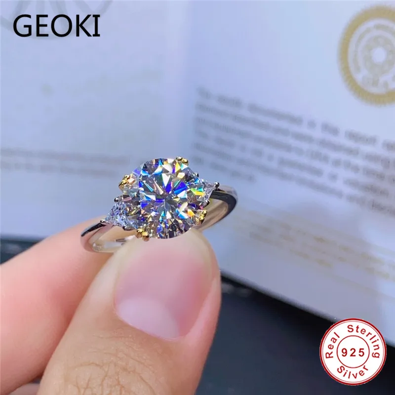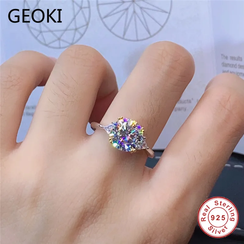 Geoki 925 стерлингового серебра прошел Алмазный тест всего 2 Ct иде...