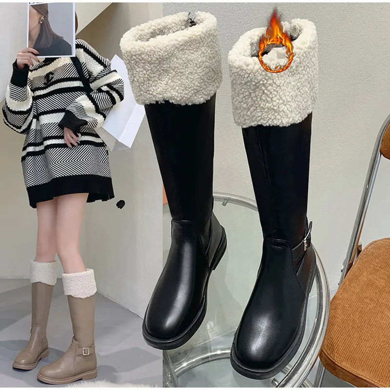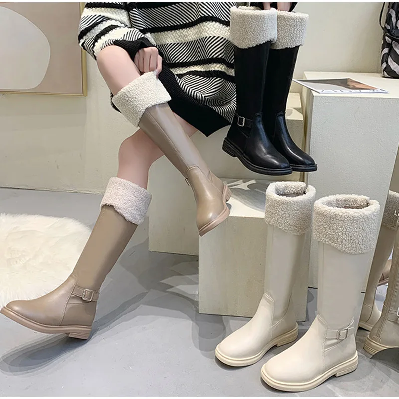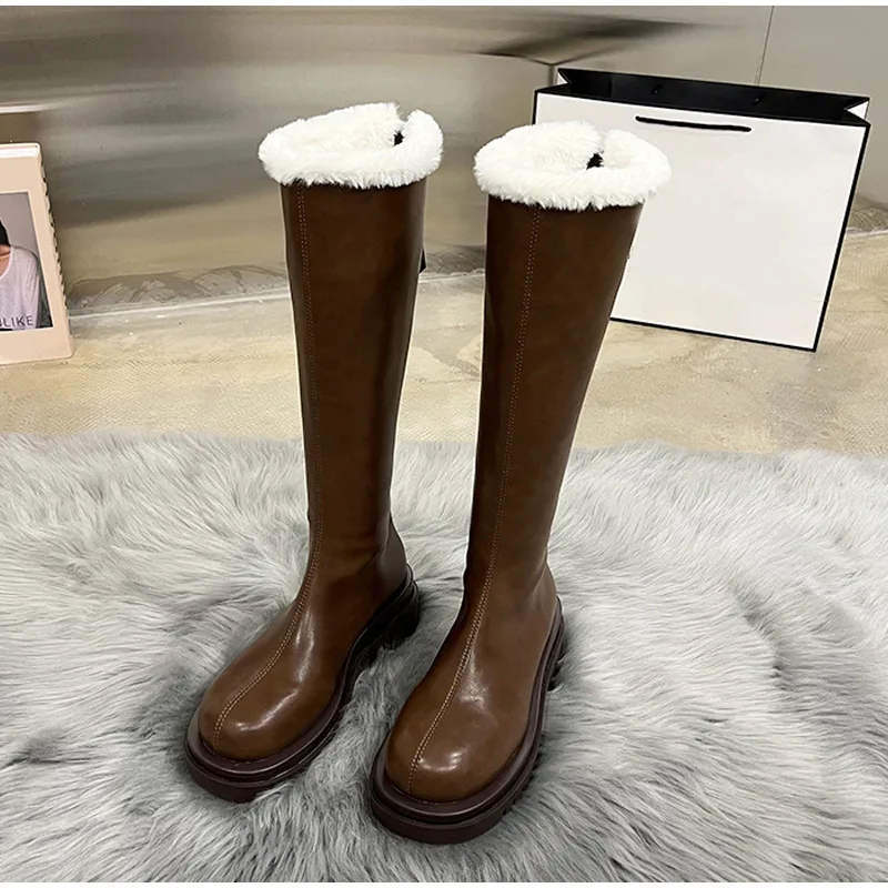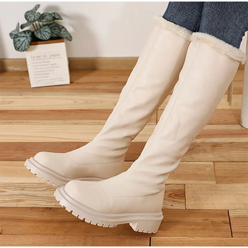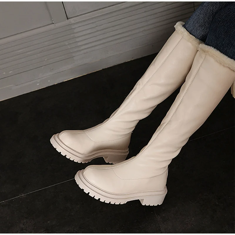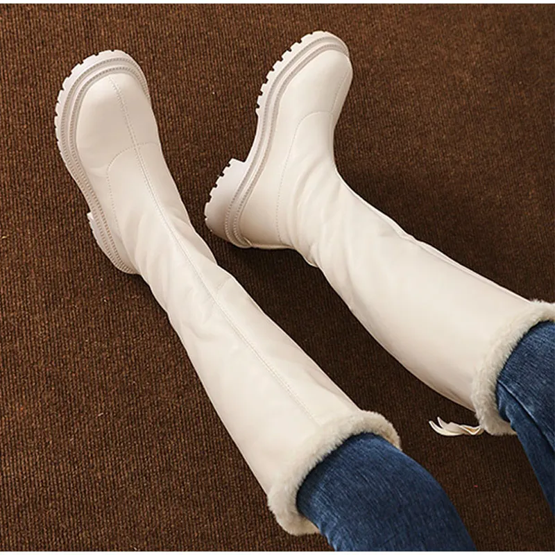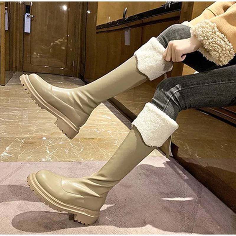 Теплые сапоги до колена, женская обувь на платформе, меховые зимние сапоги, женские зимние плюшевые высокие сапоги для мотоциклистов, модная новинка