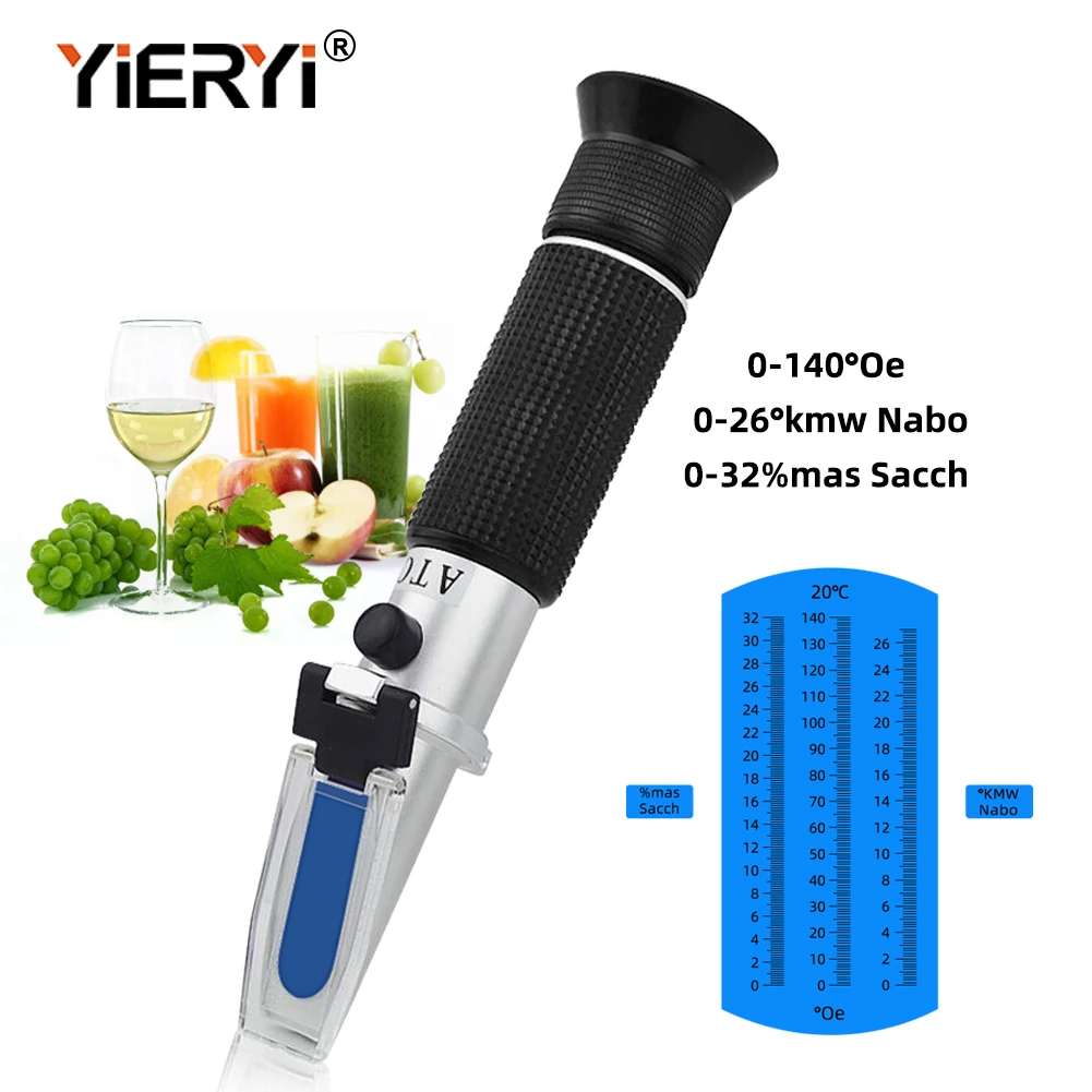 Yieryi портативный 3 в 1 винный рефрактометр 0-140 ° Oe/0-26 ° kmw Nabo/0-32% mas Sacch OE измеритель сока тестер с ATC