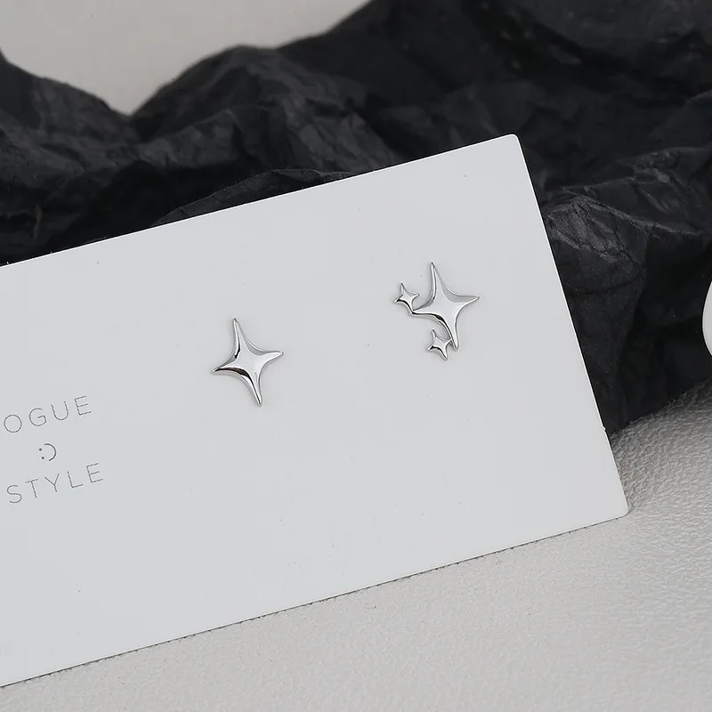 Женские асимметричные серьги-гвоздики из серебра 925 пробы с четырьмя звездами