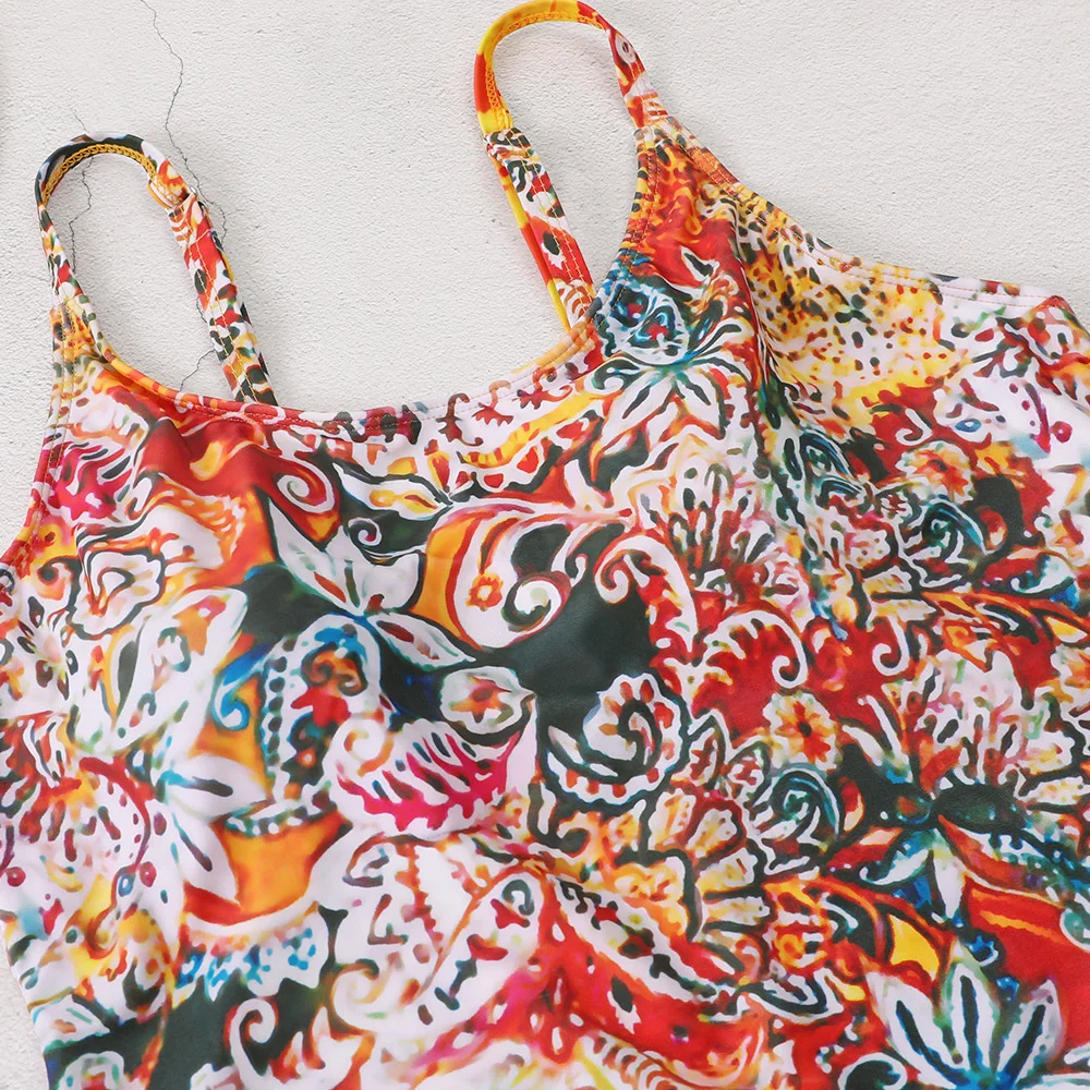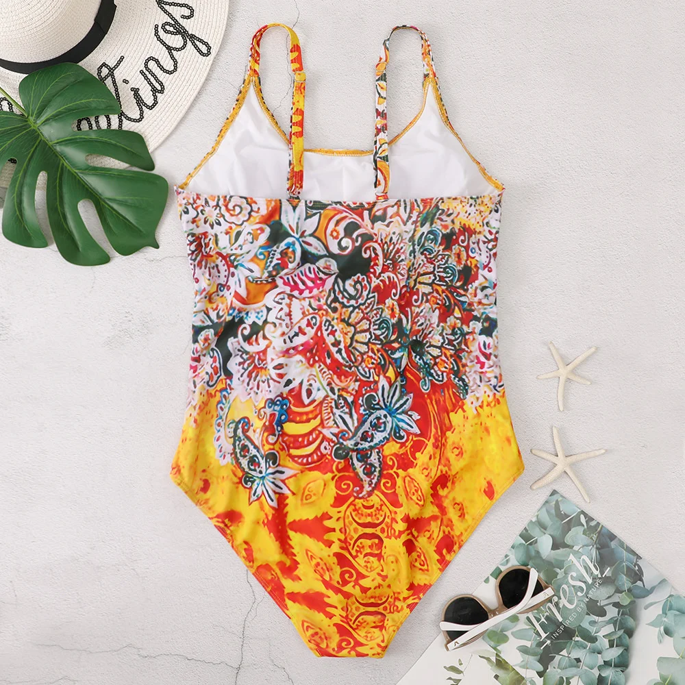 Новый цветочный сексуальный цельный купальник большого размера с пу...