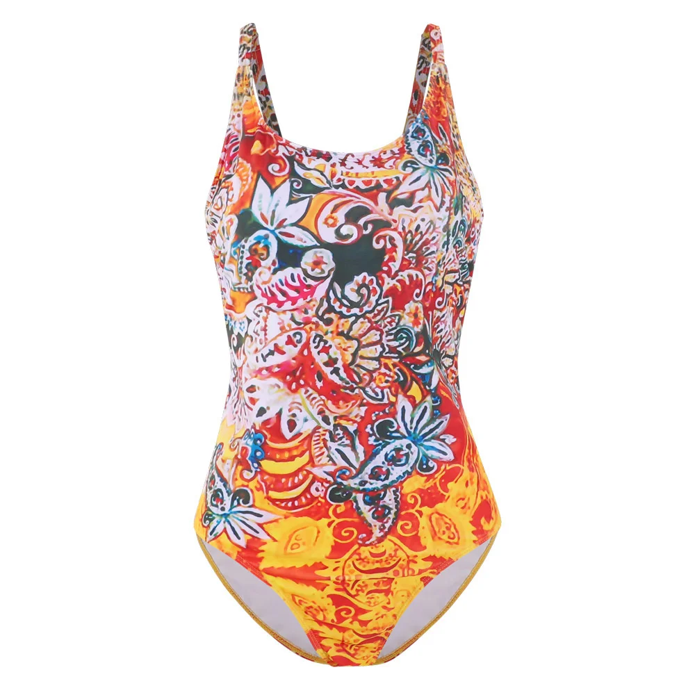 Цельный купальный костюм с принтом, закрытая Женская одежда для пла...