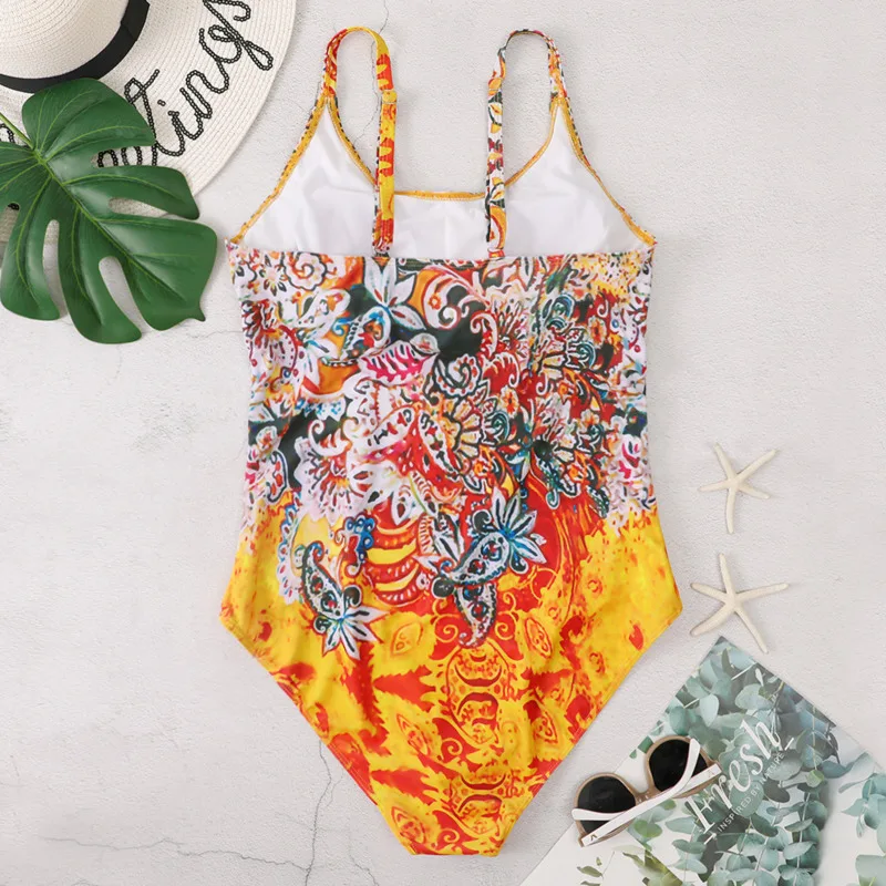 Сексуальные цельные большие купальники с цветочным рисунком, закрыт...
