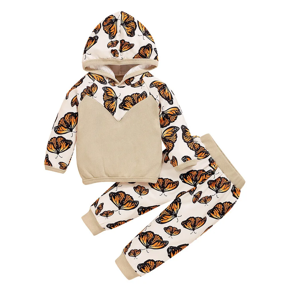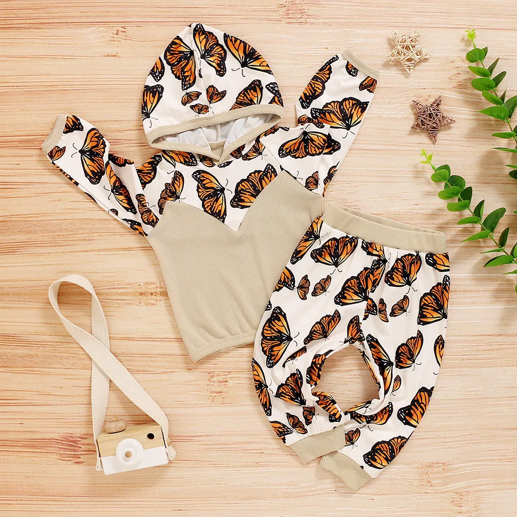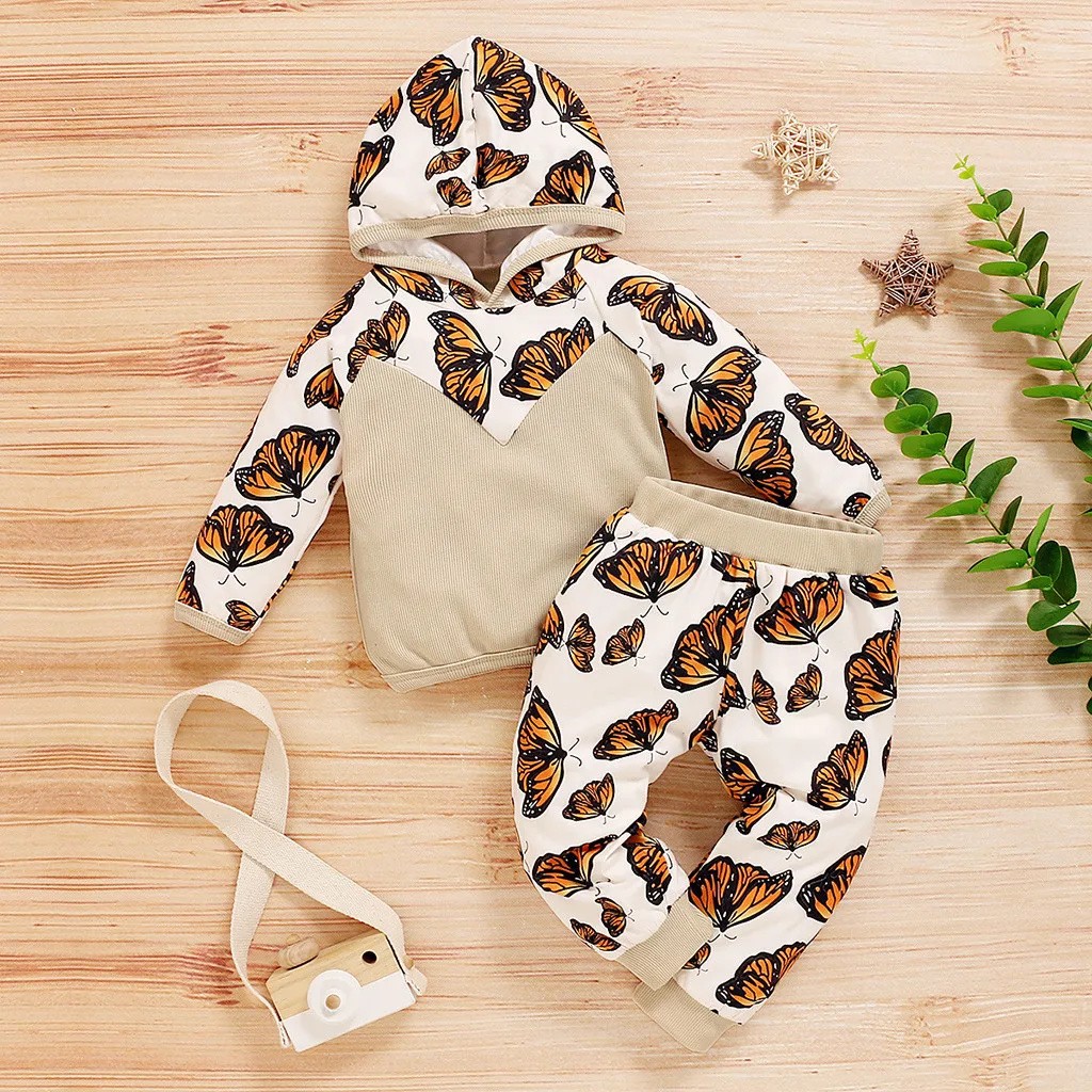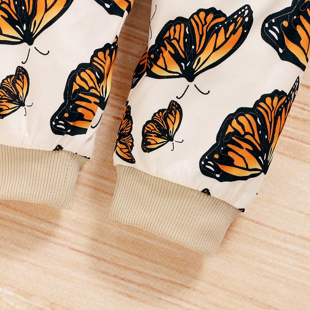 Комплект одежды для новорожденных девочек: толстовка с длинными рукавами и Рисунком бабочки + штаны