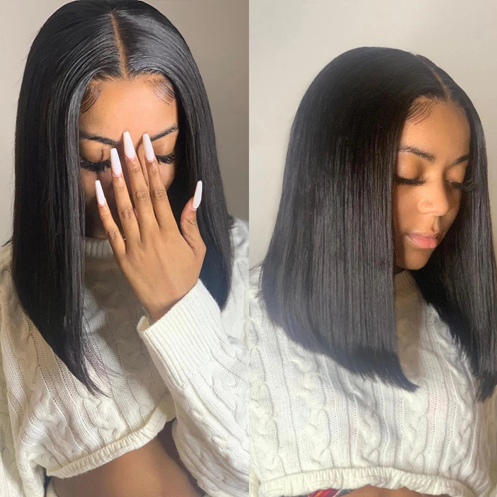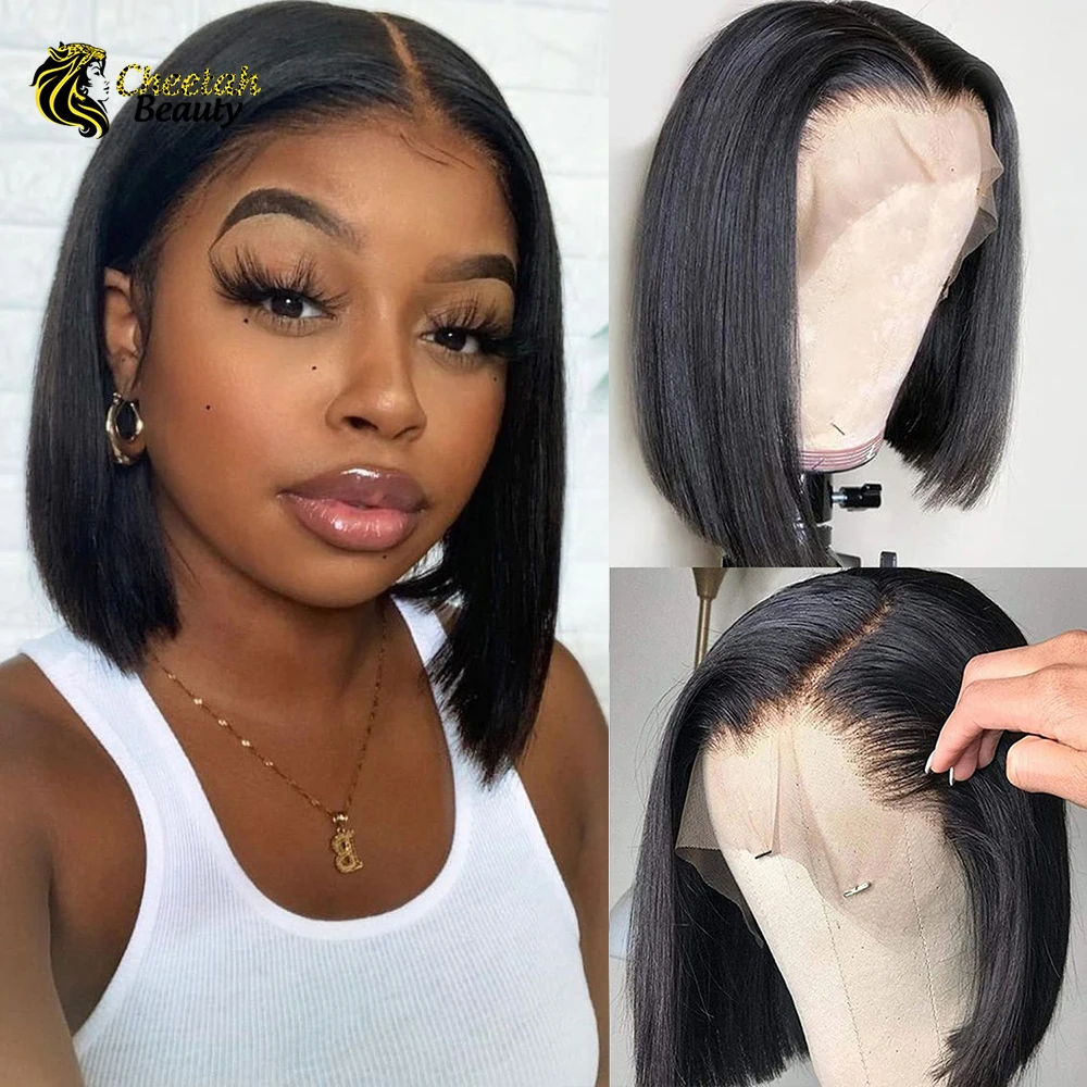 Короткие парики боб, парик из прямых человеческих волос, плотность ...