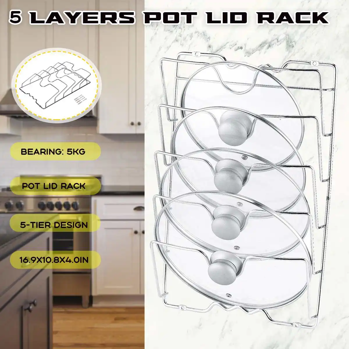 Металлическая подставка для сушки кастрюль, 5 уровней защиты от падения, настенный держатель для ложек, кухонные инструменты, Органайзер