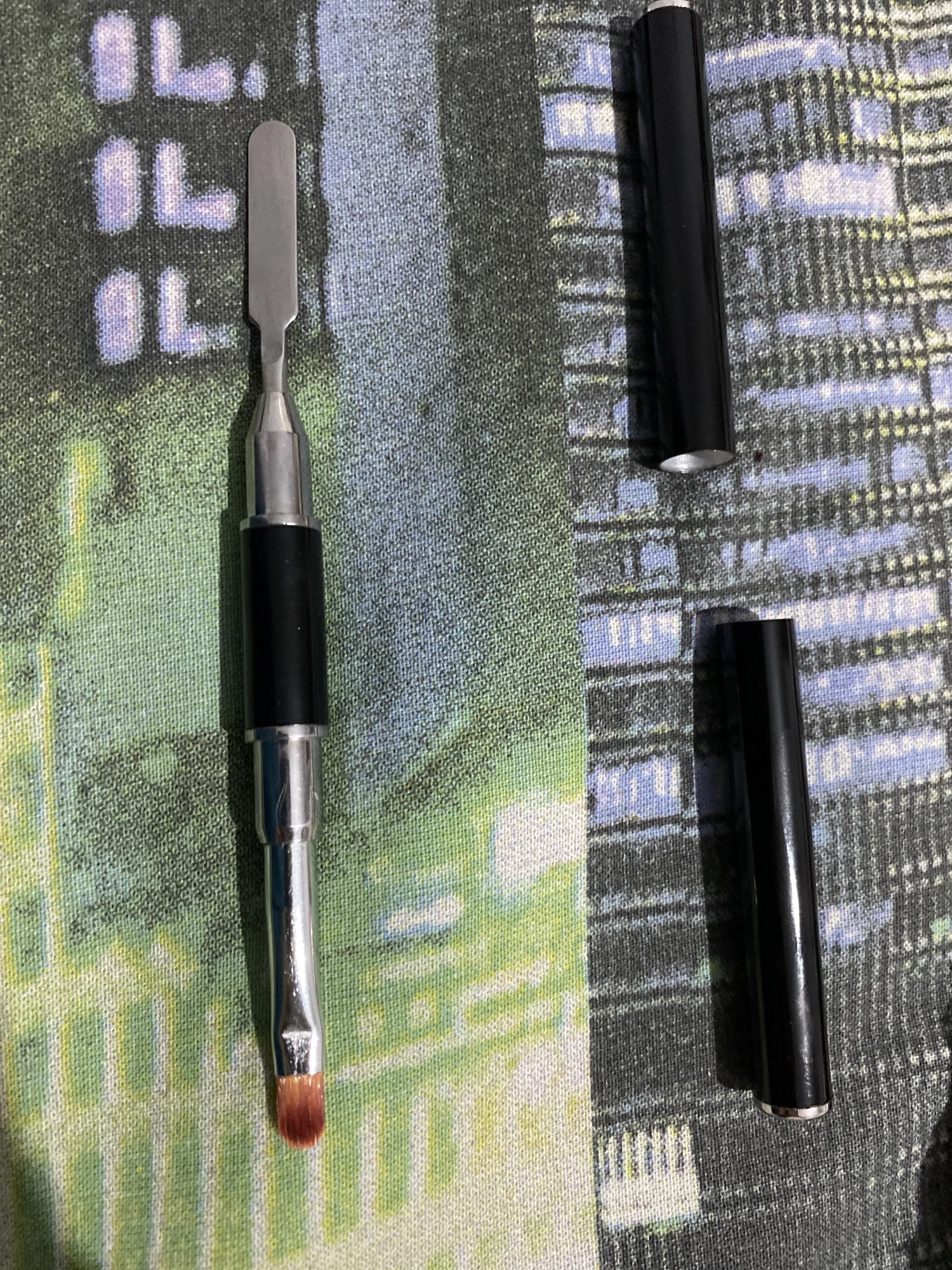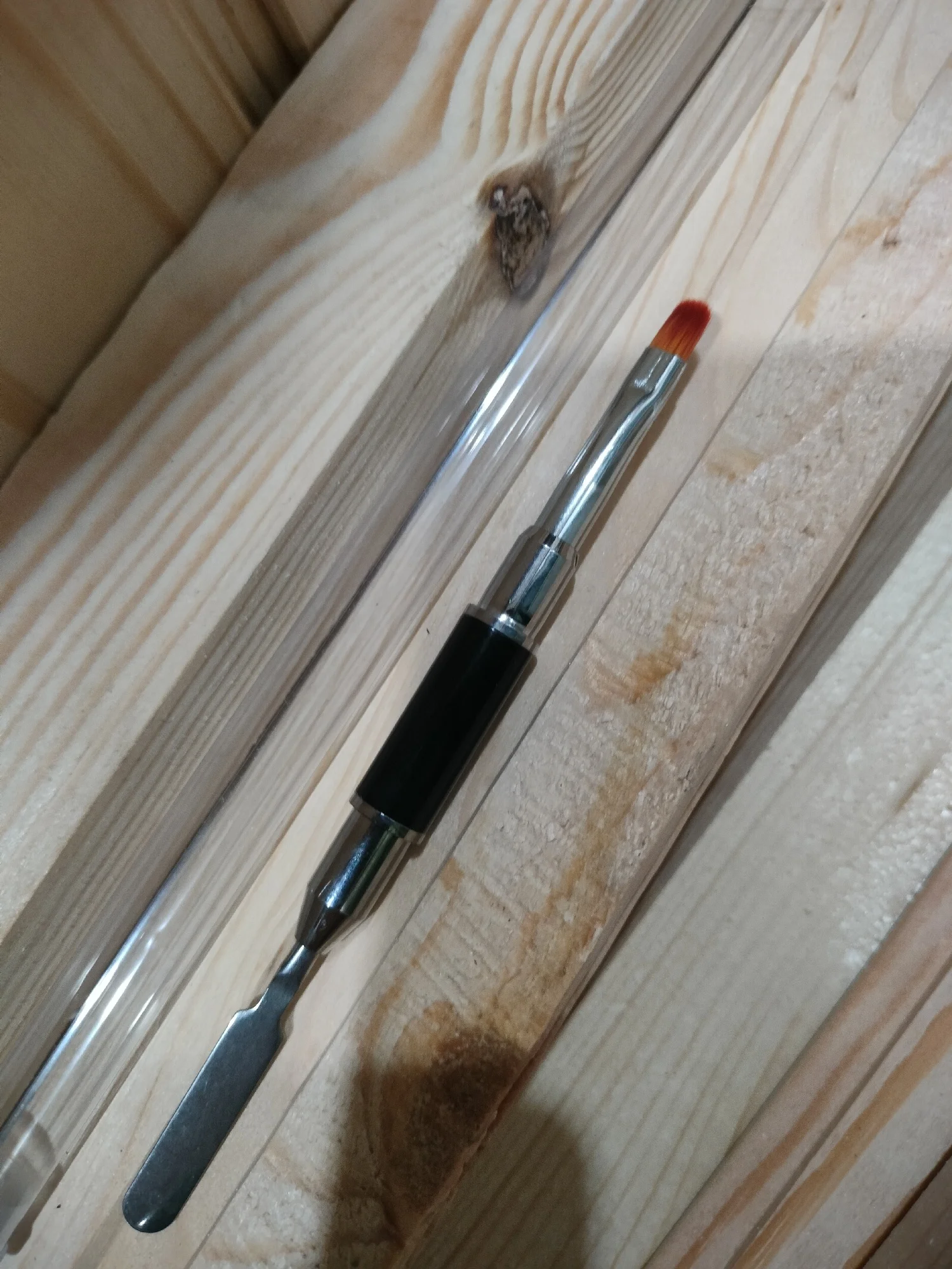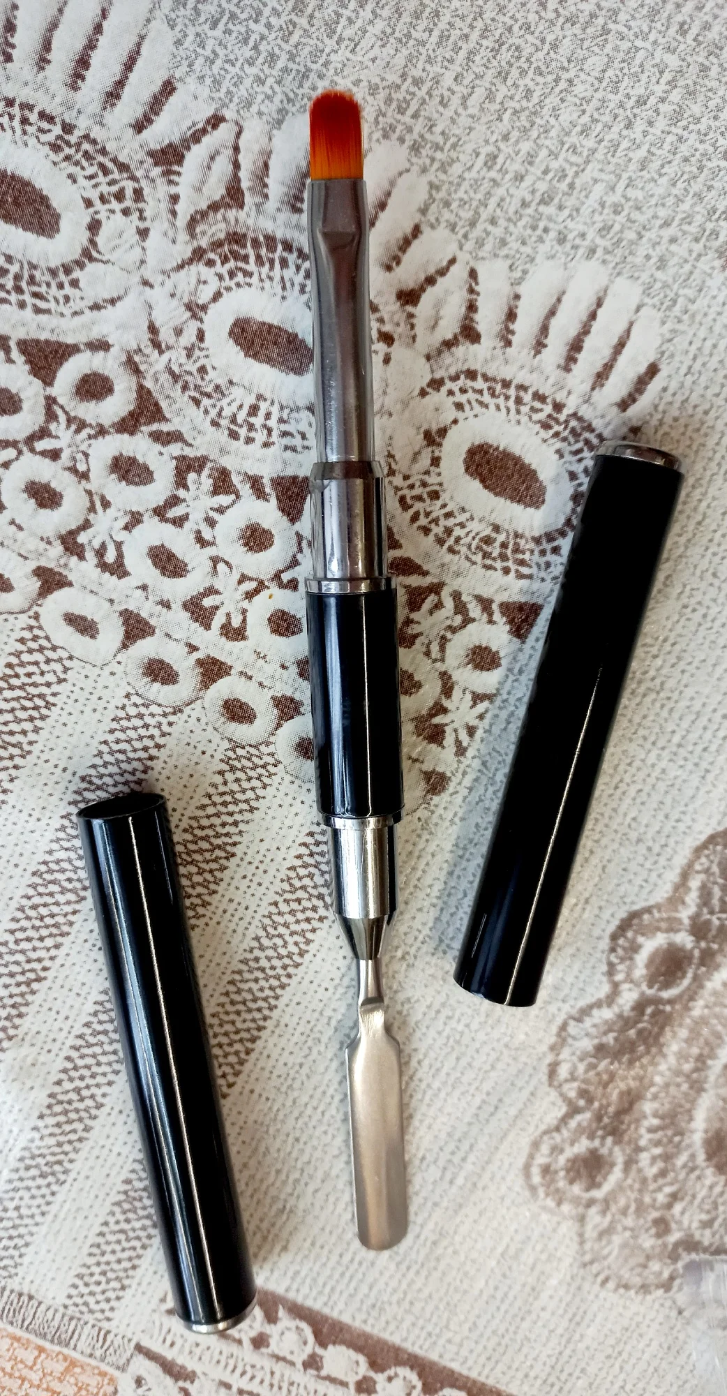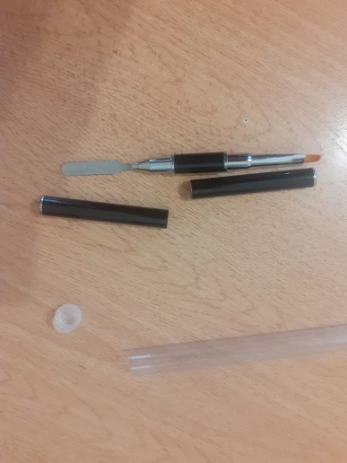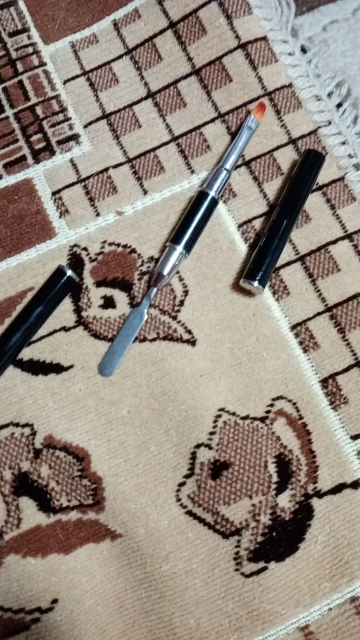 Быстрая отправка и доставка. Кисть плотная, но не жесткая,хорошо работает с гелем. Шпателем удобно гель набирать. Привлекательная упаковка ( в тубусе от этой кисточки держу самые тонкие кисточки для лака ).