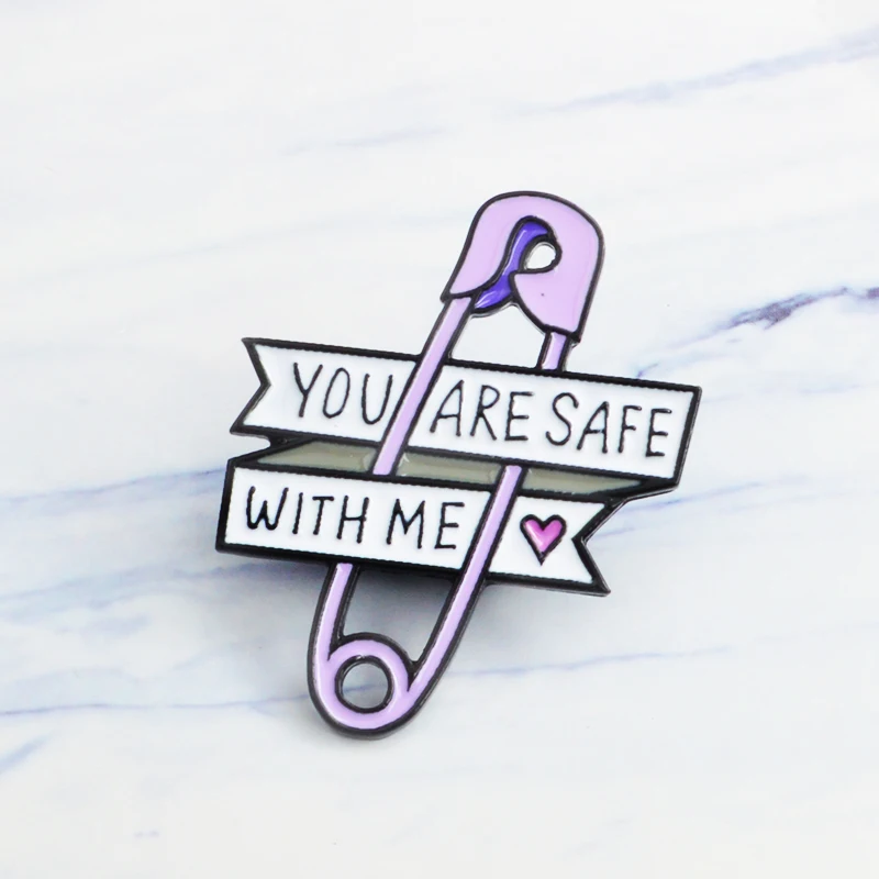 Стежка фиолетовый Скрепка эмали штырь "ты в безопасности со мной" з...