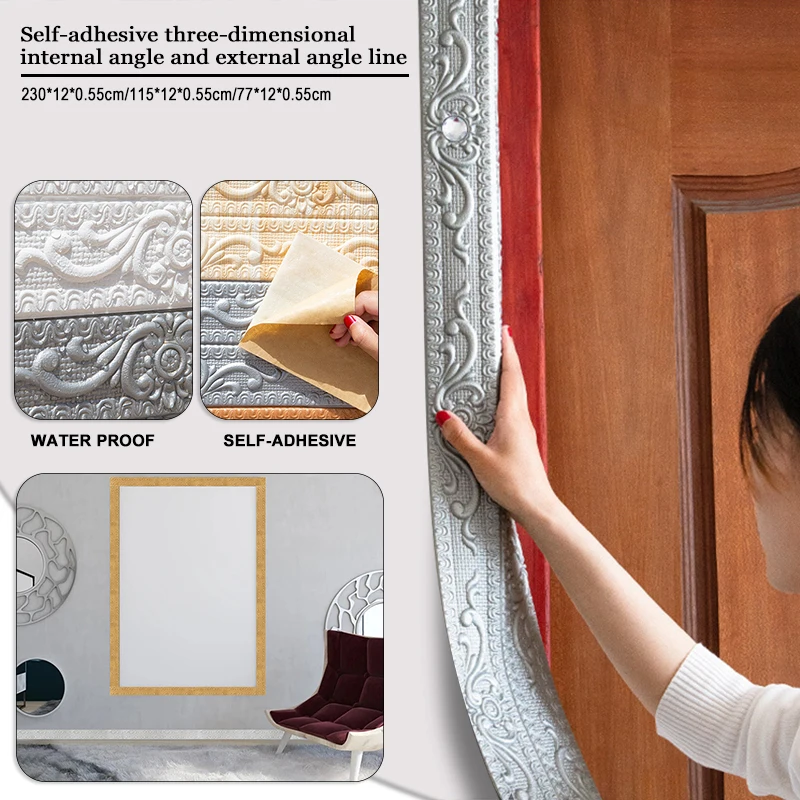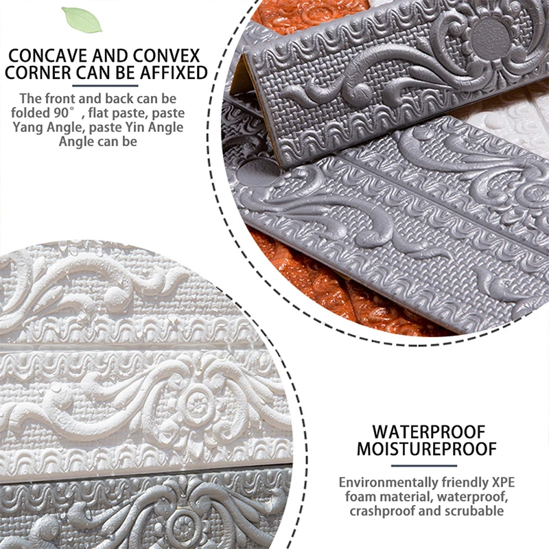 Особенности:** Материал: Изготовлен из высококачественного ПЭ пены, мягкий, высокая эластичность, анти-столкновения и прочный, помогает украсить ваш дом, чтобы быть более теплым.** Самоклеющиеся: просто очистите и приклейте, клей не нужен.** Многофункциональность: Может использоваться для украшения стен, дверных рам, дверных проемов, лестниц, ТВ-фона, настенных шкафов, потолка и других предметов домашнего декора.** Широкое применение: Идеально подходит для украшения дома своими руками. Отлично подходит для дома, офиса, отеля, питомника, детского сада, спальни, гостиной и многого другого.** Широко используется: декоративные формовочные Планки для краев, углов и стен. Можно использовать для украшения дома своими руками** Украшение: Модный и простой узор, придает уникальный декоративный стиль.** Простота установки: поставляется с клейкой подложкой, вы просто Очистите поверхность, очистите и приклейте к поверхности, не повреждая поверхности стен.** Практичный в использовании: анти-столкновения, простой в использовании с клеем, отлично подходит для украшения стены, ремонта стен и многое другое.