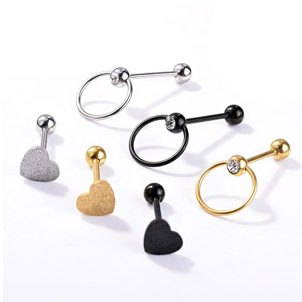 Кольцо из нержавеющей стали для пирсинга губ и носа, сердечный язык...