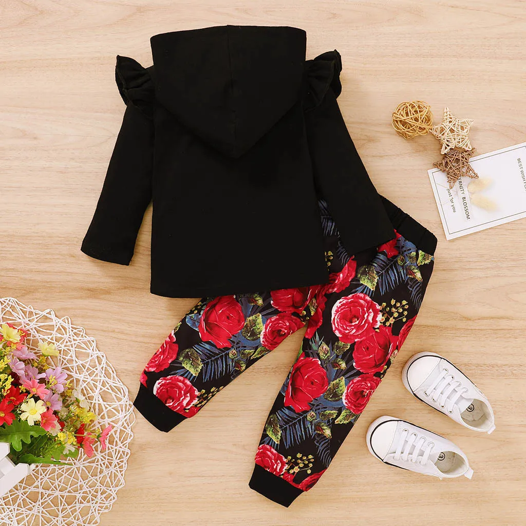 Детская одежда TELOTUNY, толстовка с длинным рукавом и буквенным принтом для маленьких девочек + штаны с цветочным принтом, комплекты одежды, одежда для маленьких девочек
