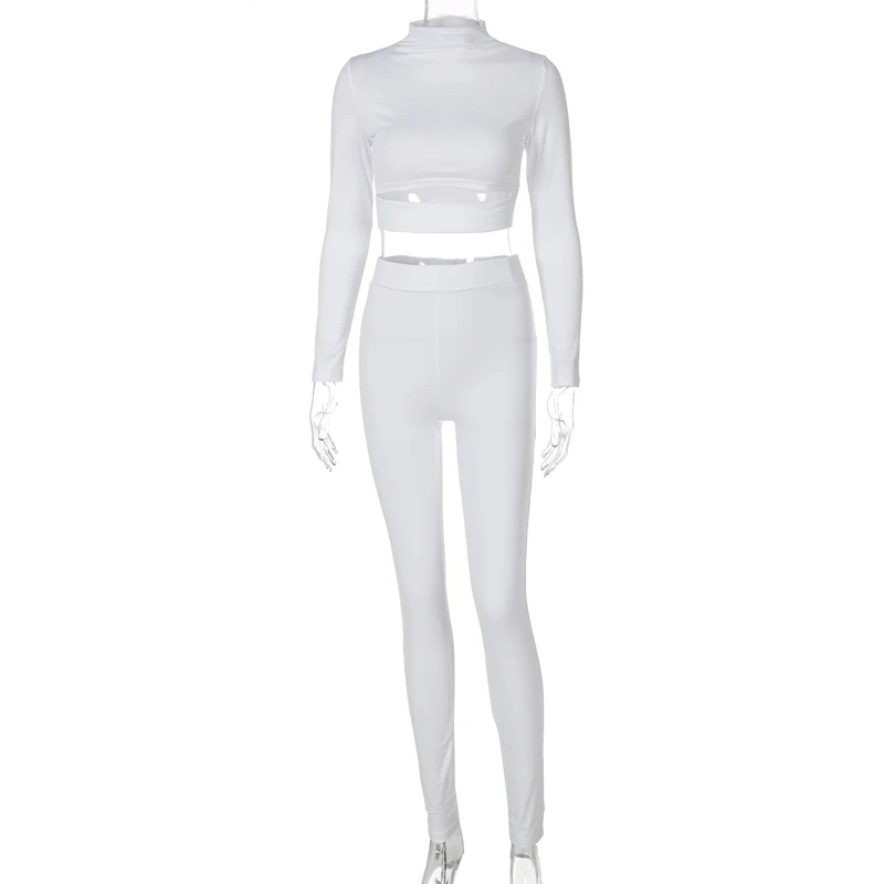 Женский спортивный костюм kayoваши из 2 предметов осень-зима 2022 Топ с длинным рукавом с вырезами леггинсы с высокой талией облегающий уличный спортивный комплект