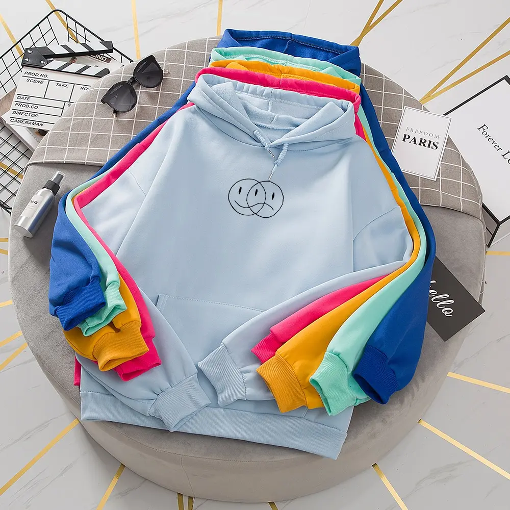 Женские толстовки в стиле Харадзюку, однотонный свитшот с капюшоном...