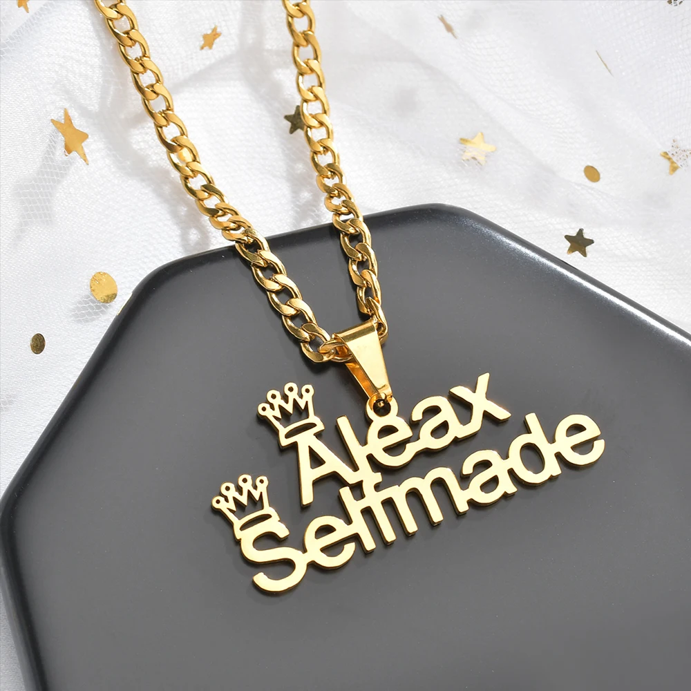 Кулон Goxijite с большим именем короны для мужчин и женщин, персонализированные таблички с двойными буквами, кубинская цепь, ожерелья, подарок ручной работы