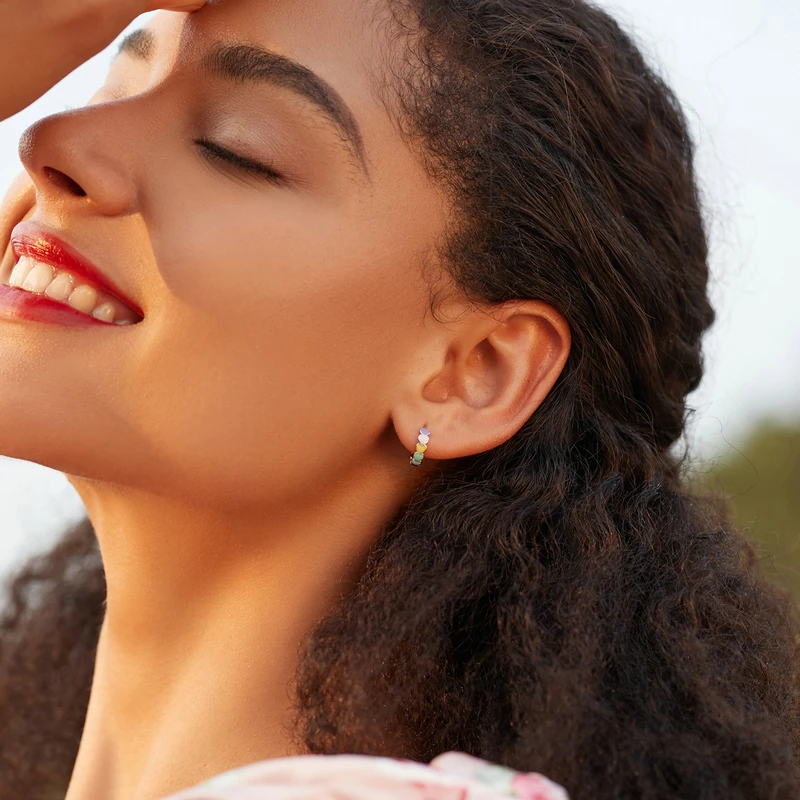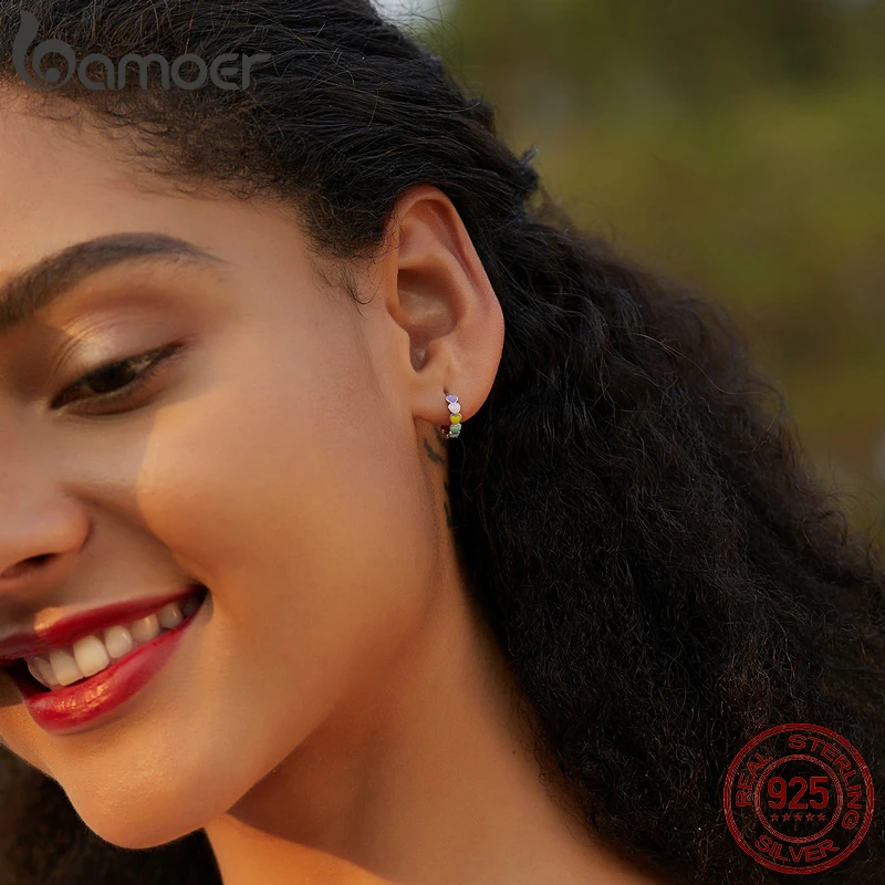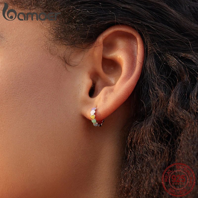 bamoer Серьги-кольца из стерлингового серебра 925 пробы с радугой, женские разноцветные серьги в форме сердца с эмалью, ювелирные украшения