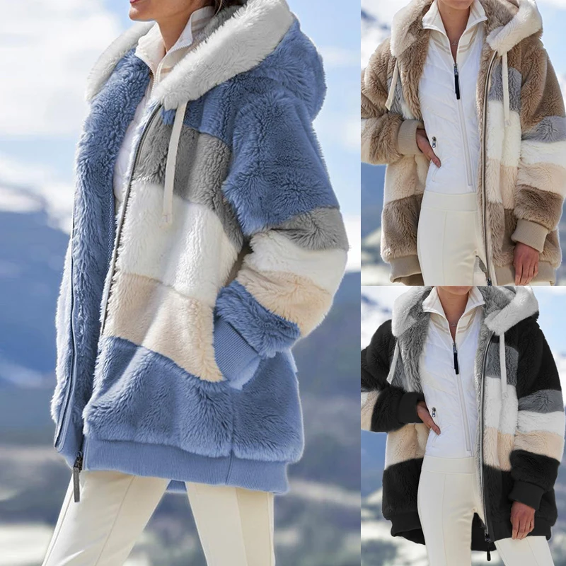 Зимнее женское плюшевое пальто, модная куртка с капюшоном на молнии...