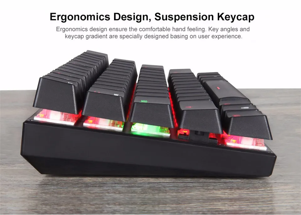 Спецификация:1. Бренд: Motospeed2. Модель: CK623. Подключение: bluetooth 3,0 и USB-C Проводной Двойной режим4. Подсветка: RGB и чисто белая подсветка5. Переключатель: Синий переключатель Outemu, красный переключатель6. Анти-ореолы номер: NKRO7. Номер ключа: 61 Ключ 60% макет8. Ток: 5V - 300mA (проводном режиме), 3,7 V - 200mA (Включите bluetooth-режим)9. Источник питания: Встроенный литий-ионный аккумулятор 1300 мАч10. Время зарядки: 3 - 4 часа11. Время работы в режиме ожидания: 480 часов12. Время работы: 10 часов13. Поддержка системы: Android, для iOS, Windows14. Диапазон беспроводной передачи: 10 м15. Срок службы клавиатуры (раз): 50 миллионов раз16. Ответ Скорость: 0,1 мс17. Размер продукта (Д x Ш x В): 29,00x10,00x4,00 см/11,42x3,94x1,57 дюймов18. Вес изделия: 490 г19. Кабель Длина (м): 1,5 мОсобенности:1. Поддерживает bluetooth и проводное двухрежимное соединение, подходит для деловых поездок или развлечений на открытом воздухе.Длительное нажатиеРежим "Fn" +"Ключ может переключить режим подключения.Желтый светильник мигает три раза, затем превращается в зеленый, клавиатура входит в проводной режим.Фиолетовый светильник мигает три раза, затем становится синим, он переходит в режим bluetooth.2. Как подключить устройство в режиме bluetoothВ первую очередь: Включите переключатель питания bluetooth на задней панели.Второй: Короткое нажатие Fn + E / R / T для сопряжения с устройствами bluetooth.Третий: Удерживайте Fn + Q в течение 3-5 с, чтобы войти в состояние сопряжения, мигает синий светильник Под клавишей Caps; Выполните поиск сигнала клавиатуры на вашем bluetooth-устройстве и выберите для подключения. Синий светильник выгорит при удачном подключении.3. Несколько режимов подсветки для опции.Нажмите клавишу Fn + меню, чтобы переключить режимы подсветки, нажмите Fn + правую клавишу Ctrl, чтобы включить цвета baclit.Нажмите клавишу Fn + O / P, чтобы настроить скорость отображения, и нажмите Fn + U / I, чтобы настроить яркость подсветки.4. Режим перекодирования для большего количества функций. ПрессFn + 1 / 2 / 3 / 4Для реализации функции транскодирования около 3 с светится Розовый индикатор-светильник.Удерживайте Fn + 1 до тех пор, пока не загорится розовый светильник под 1 клавишей, «1, 2, 3, 4, 5, 6, 7, 8, 9, 0, -, = "можно изменить на" F1 - F12 ".Удерживайте Fn + 2 до тех пор, пока не загорится розовый светильник под 2 клавишами, "[{, "]}, :, ", K,<, L, .> «Ключ может быть изменен на «PS, PB, PG, PD, INS, Del, HOME, END» функциональную клавишу.Удерживайте Fn + 3, пока не загорится розовый светильник под 3 клавишами, «/, правый Alt, меню, правый Ctrl» можно изменить на клавиши со стрелками.Нажмите Fn + 4, пока не загорится розовый светильник с 4 клавишами, кнопка «WASD» также может переключаться на клавиши со стрелками.Посылка включает в себя:1 * Клавиатура1 * кабель Type-C1 * руководство на английском/китайском языках