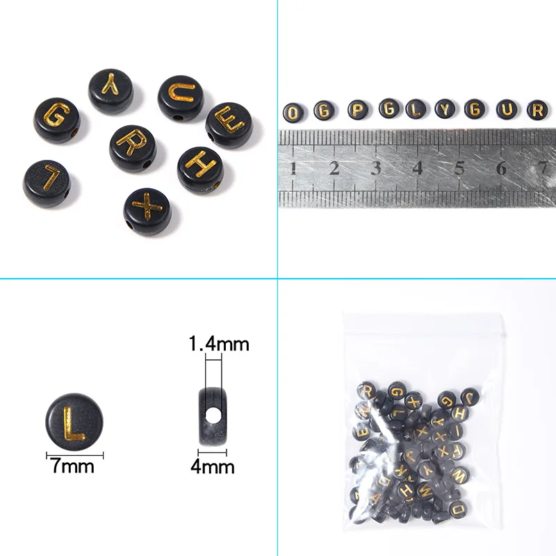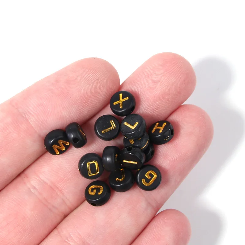 Круглые бусины с буквами алфавита, черные акриловые бусины 7 х4 ММ золотого цвета для изготовления ювелирных изделий сделай сам, браслетов и ожерелий ручной работы, 100 шт.