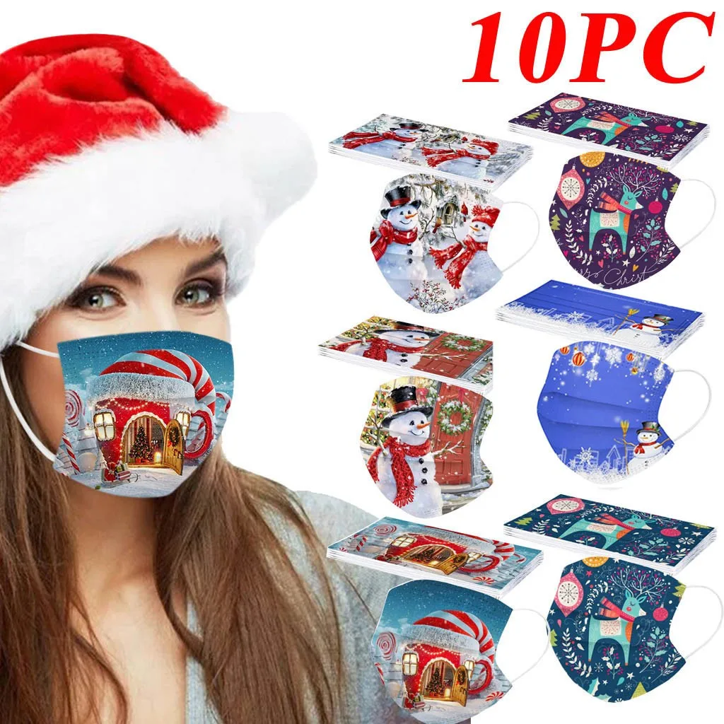 Маска для взрослых из нетканого материала с рождественским принтом, 10 шт.