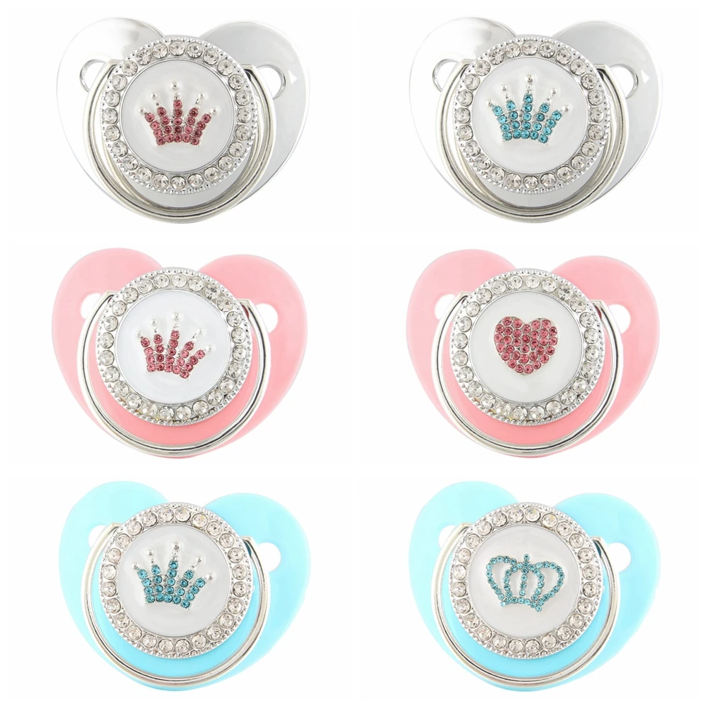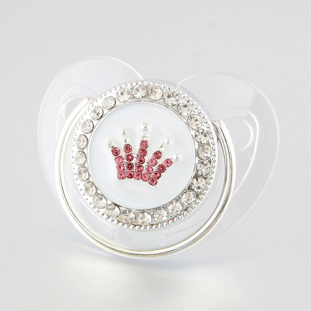 Шикарная розовая корона для принцессы Стразы детская пустышка леденец элегантный младенческой сердце манекен Cocka Chupeta Baby душ подарок