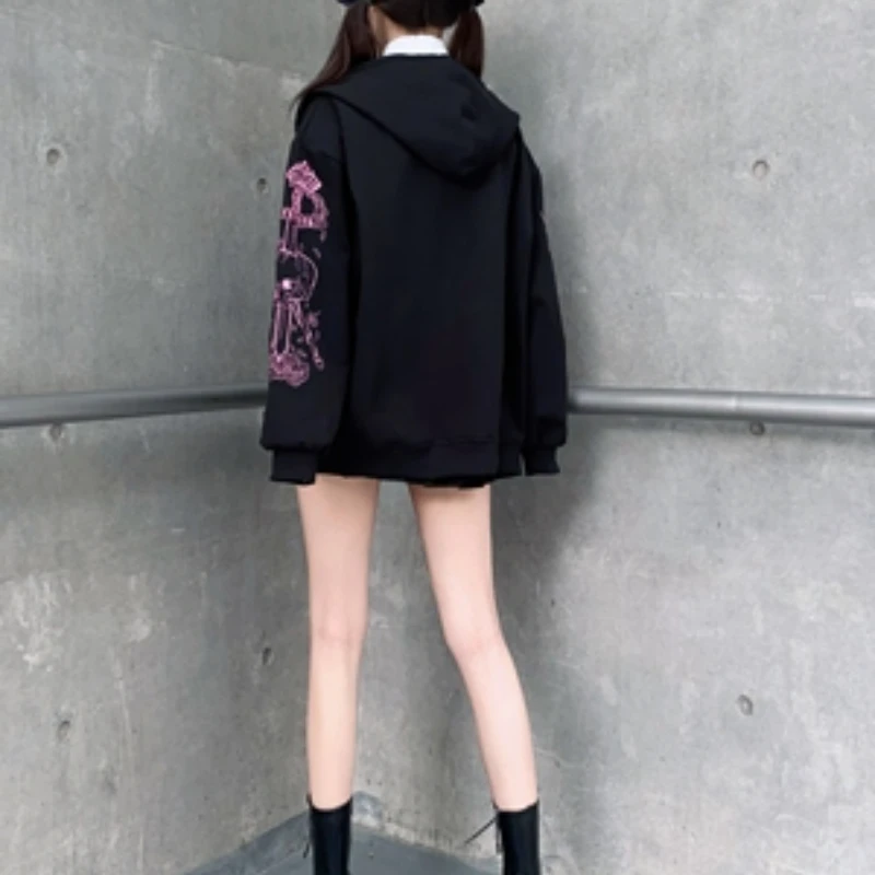 Панк E-girl на молнии Толстовка Готический гранж графическая вышивк...