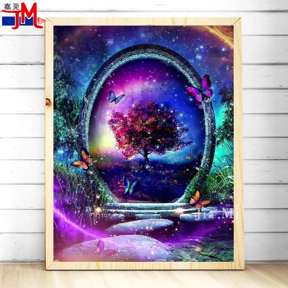 Полная дрель DIY фантазия пейзаж 5D алмазная вышивка крестиком Алмазная вышивка сказочное дерево узоры мозаика бабочка пазл