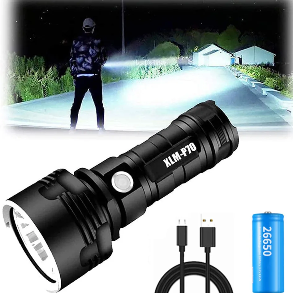 Супермощный светодиодный фонарик L2 P70, перезаряжаемый водонепроницаемый тактический фонарь для кемпинга, аварийного мигания и повседневного использования