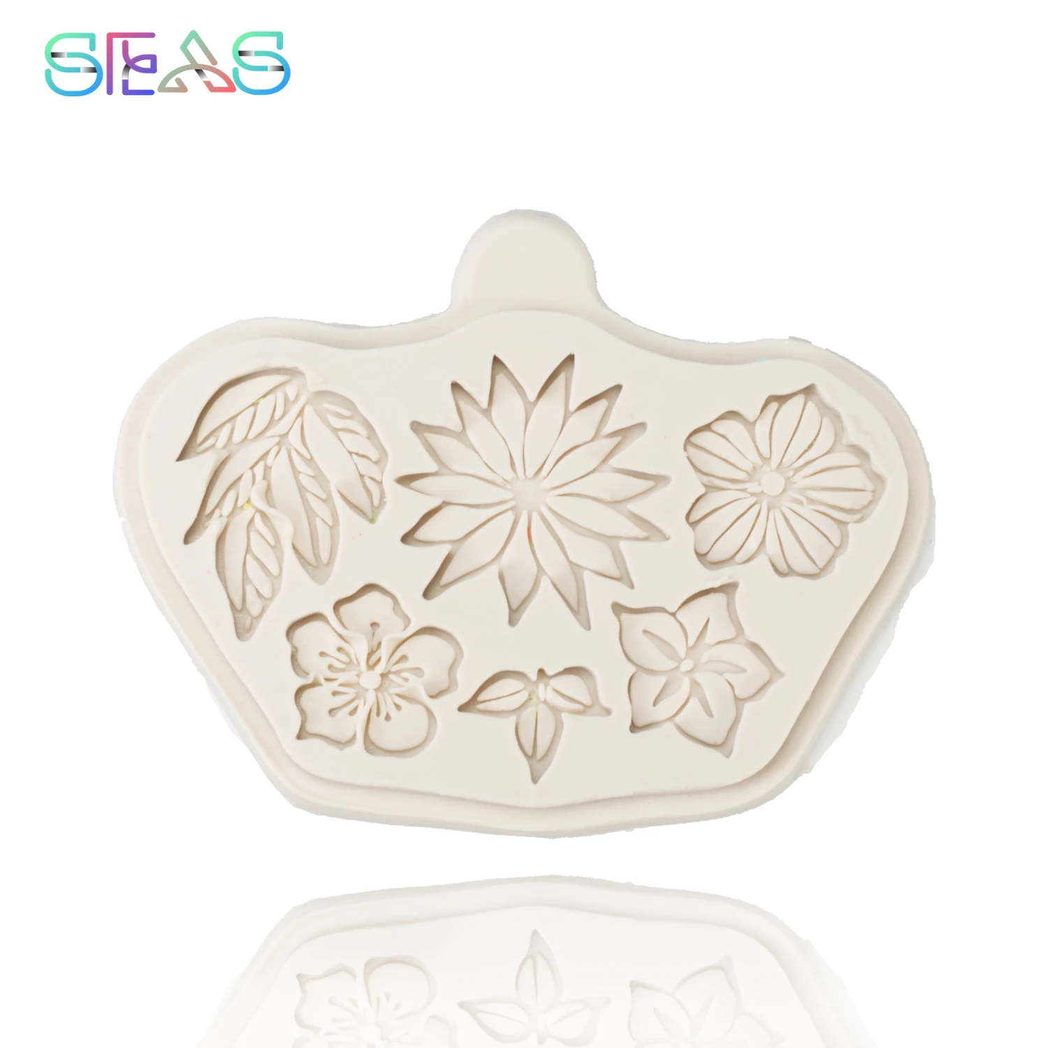 Силиконовая форма в виде листьев и пуговиц для украшения торта