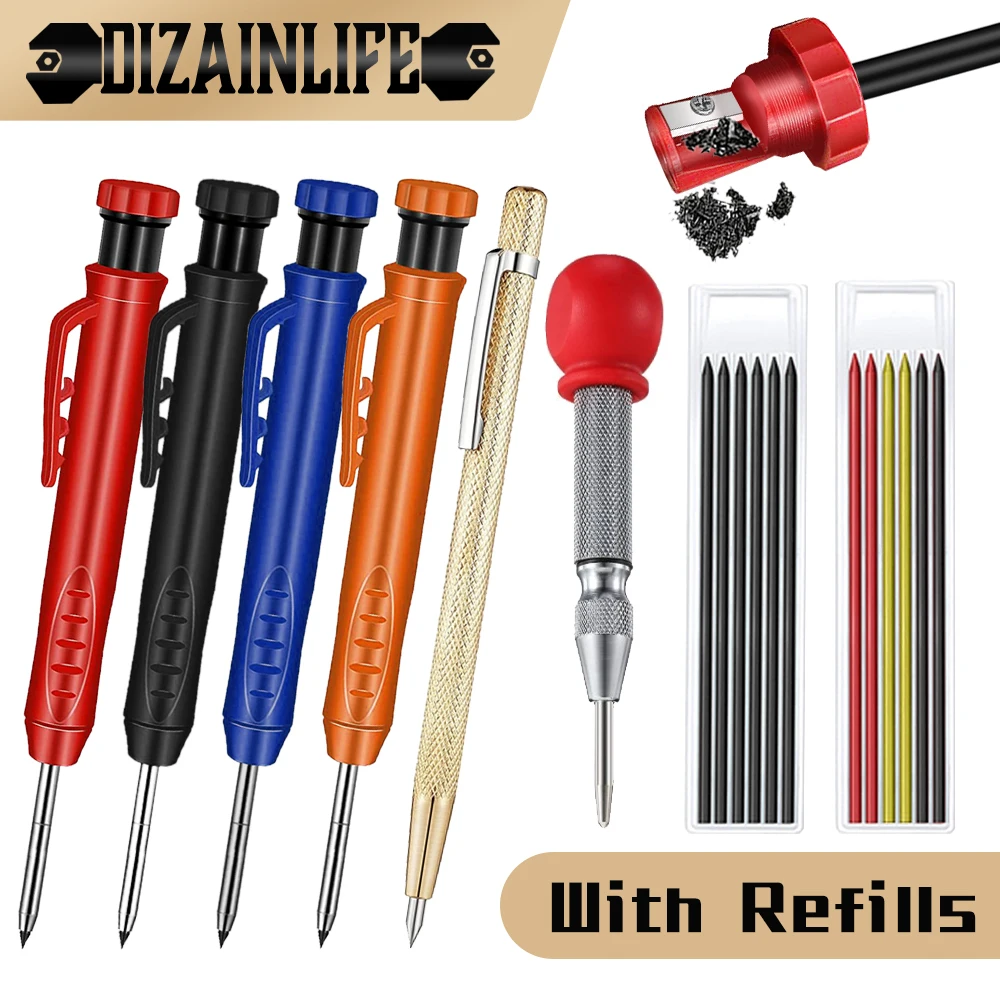 Твердый Плотницкий Карандаш Набор с центральным дыроколом карбидный разметчик для строительства деревообработки долговременный глубокий отверстие маркер маркировочный инструмент