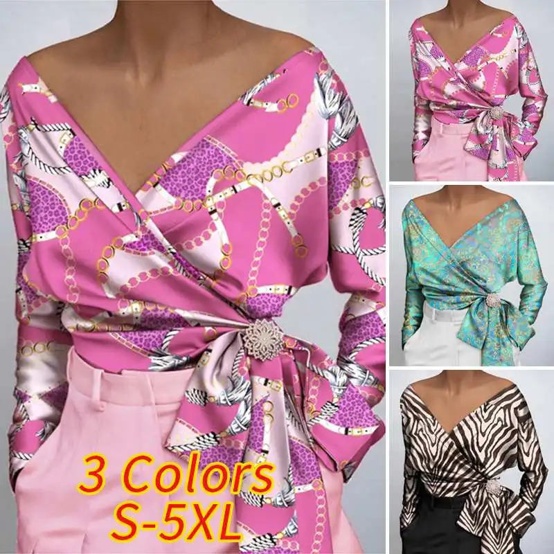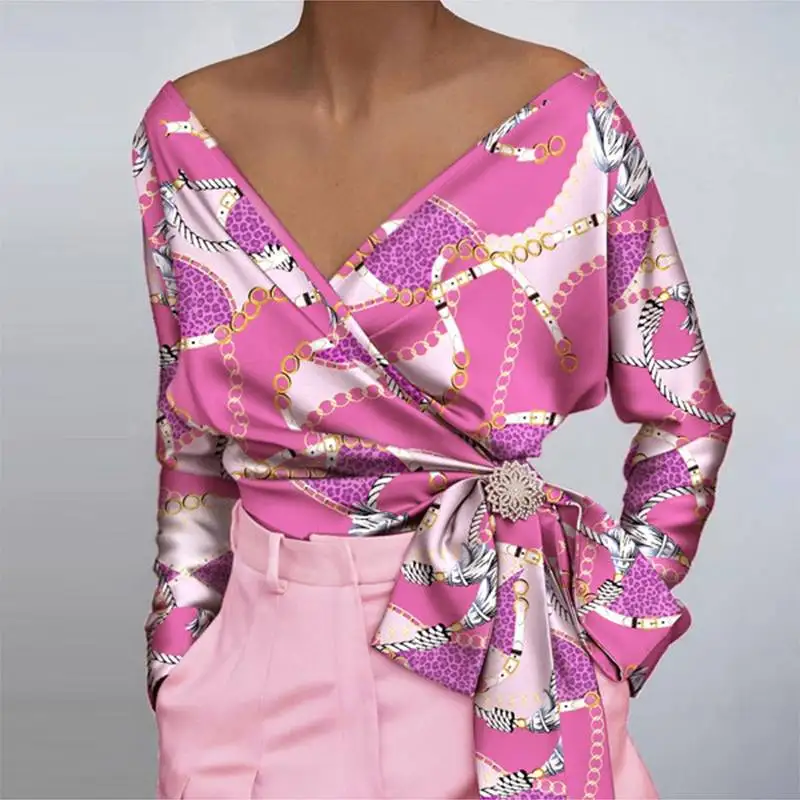 Женские рубашки с длинным рукавом и V-образным вырезом, блузка VOND...