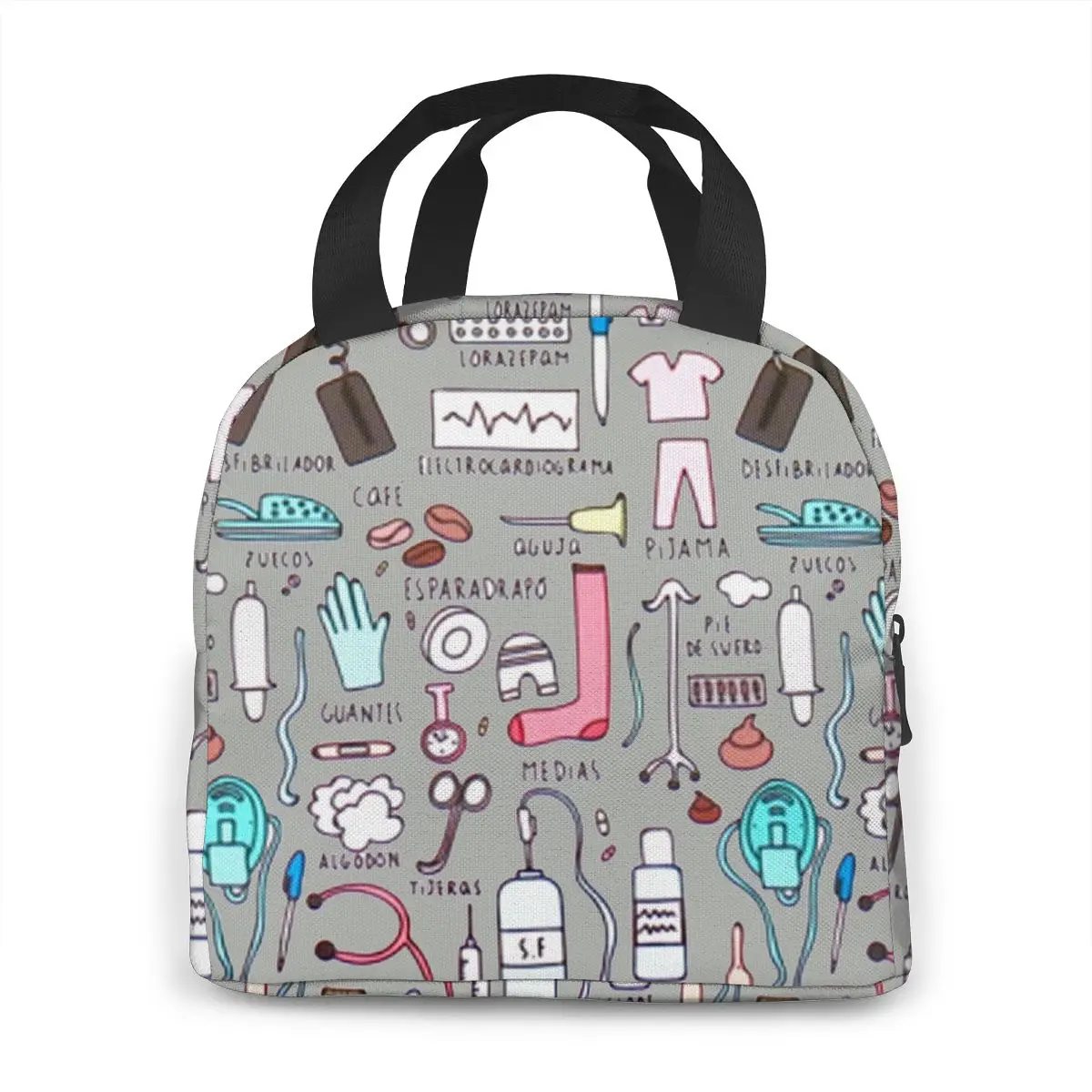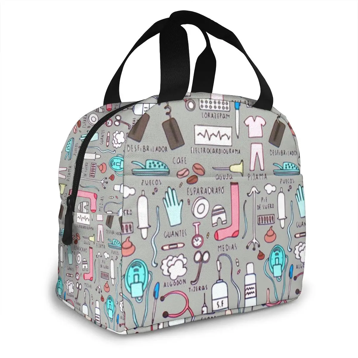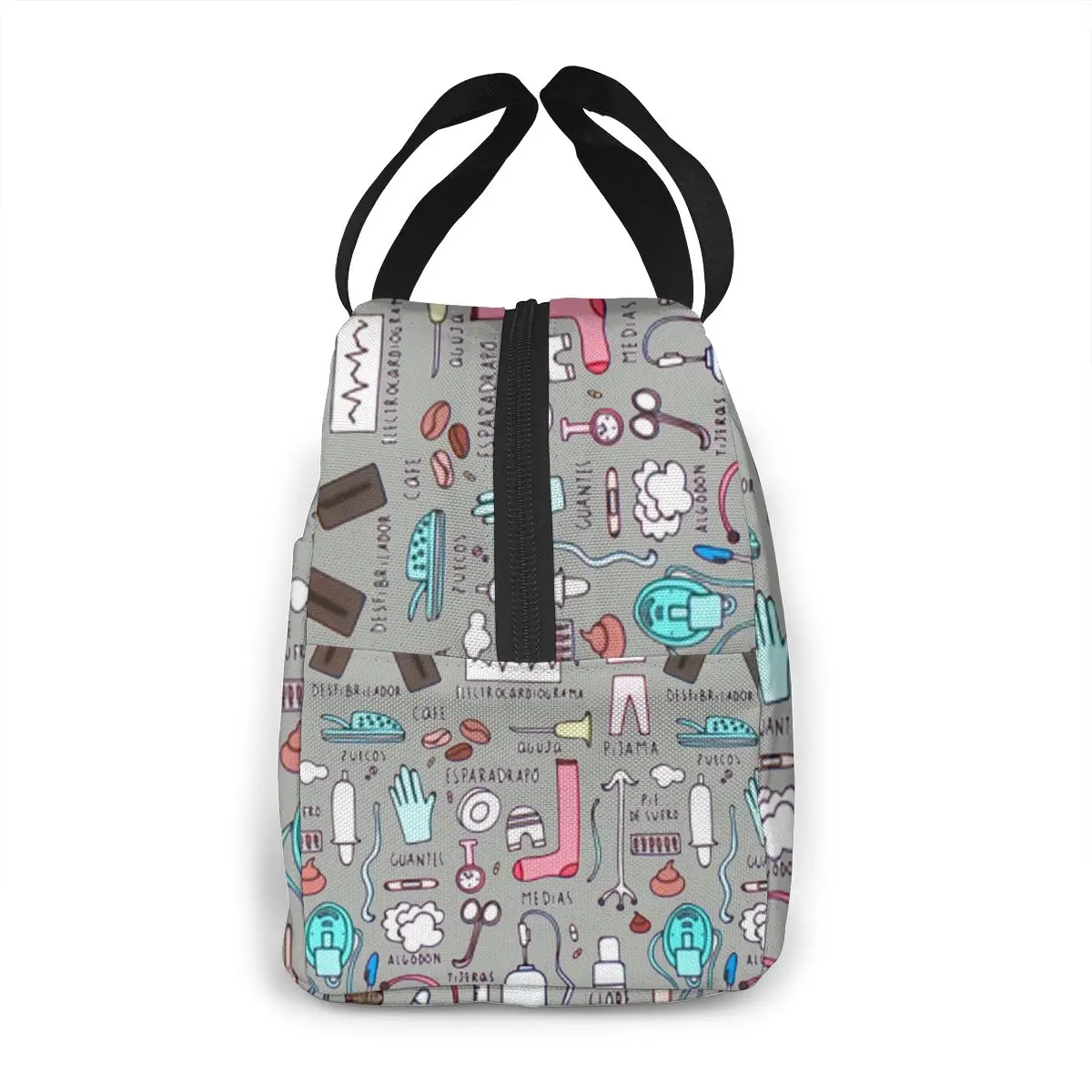Узор с изображением сиделки, свежие сумки-холодильники, водонепроницаемые, портативные, на молнии, термо, Оксфорд, сумки для обеда, Женские Удобные сумки для обеда, сумки для еды