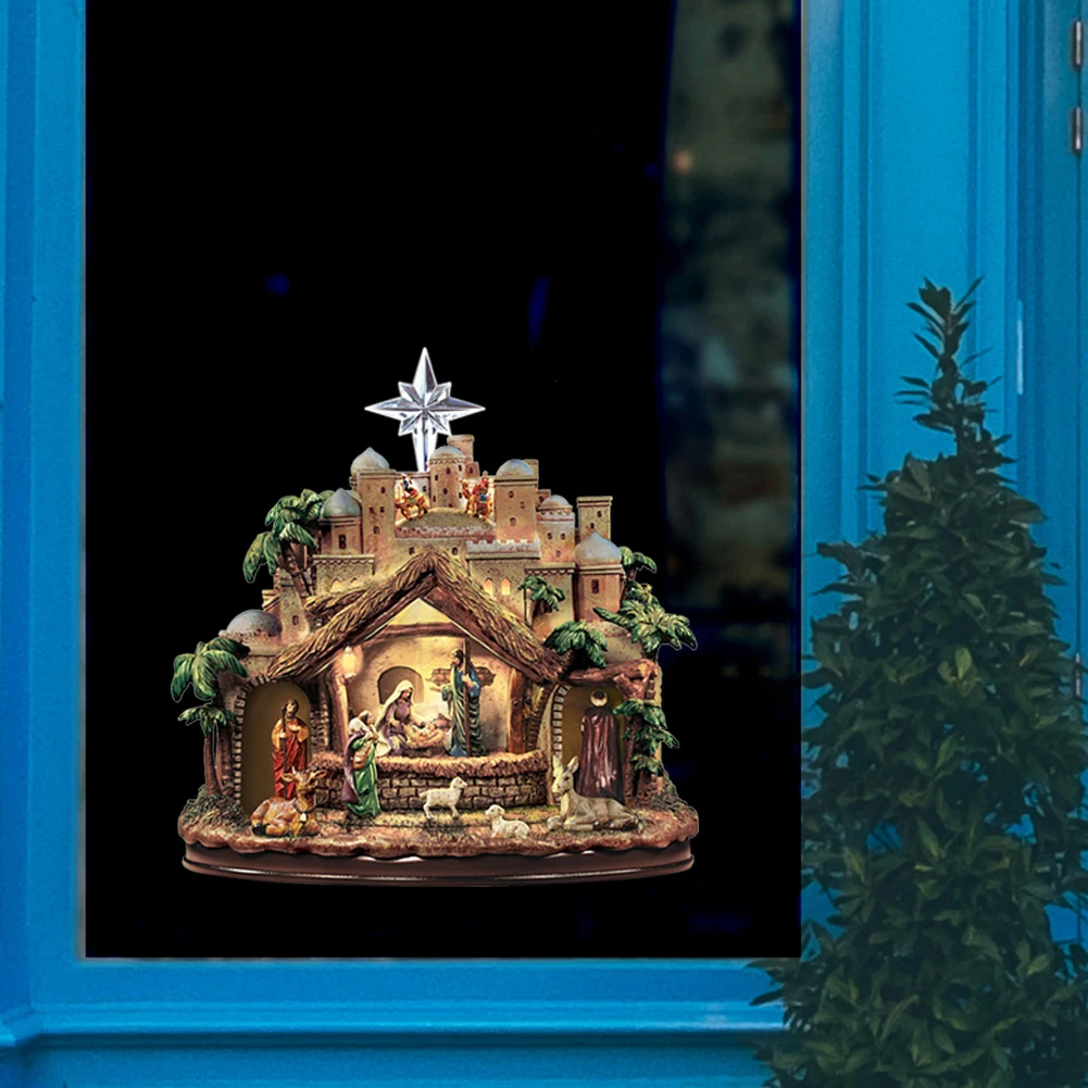 Наклейки на стену с рождественским крестиком, наклейки на окно с рождественской тематикой, самоклеящиеся наклейки для дома, рождественские украшения