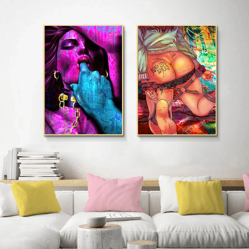 Настенный плакат с изображением граффити в современном уличном стиле, привлекательная Женская Картина на холсте для влюбленных, декор для гостиной и дома, настенные украшения