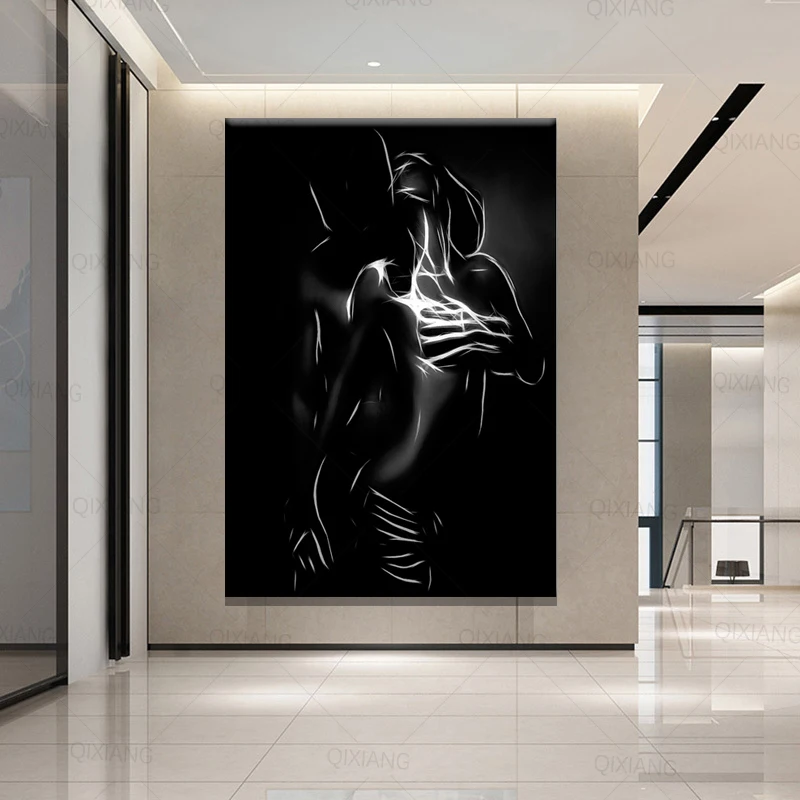 Черно-белая Обнаженная парная Картина на холсте сексуальное тело для женщин и мужчин настенный плакат печать Настенная картина для комнаты домашний декор квадраты
