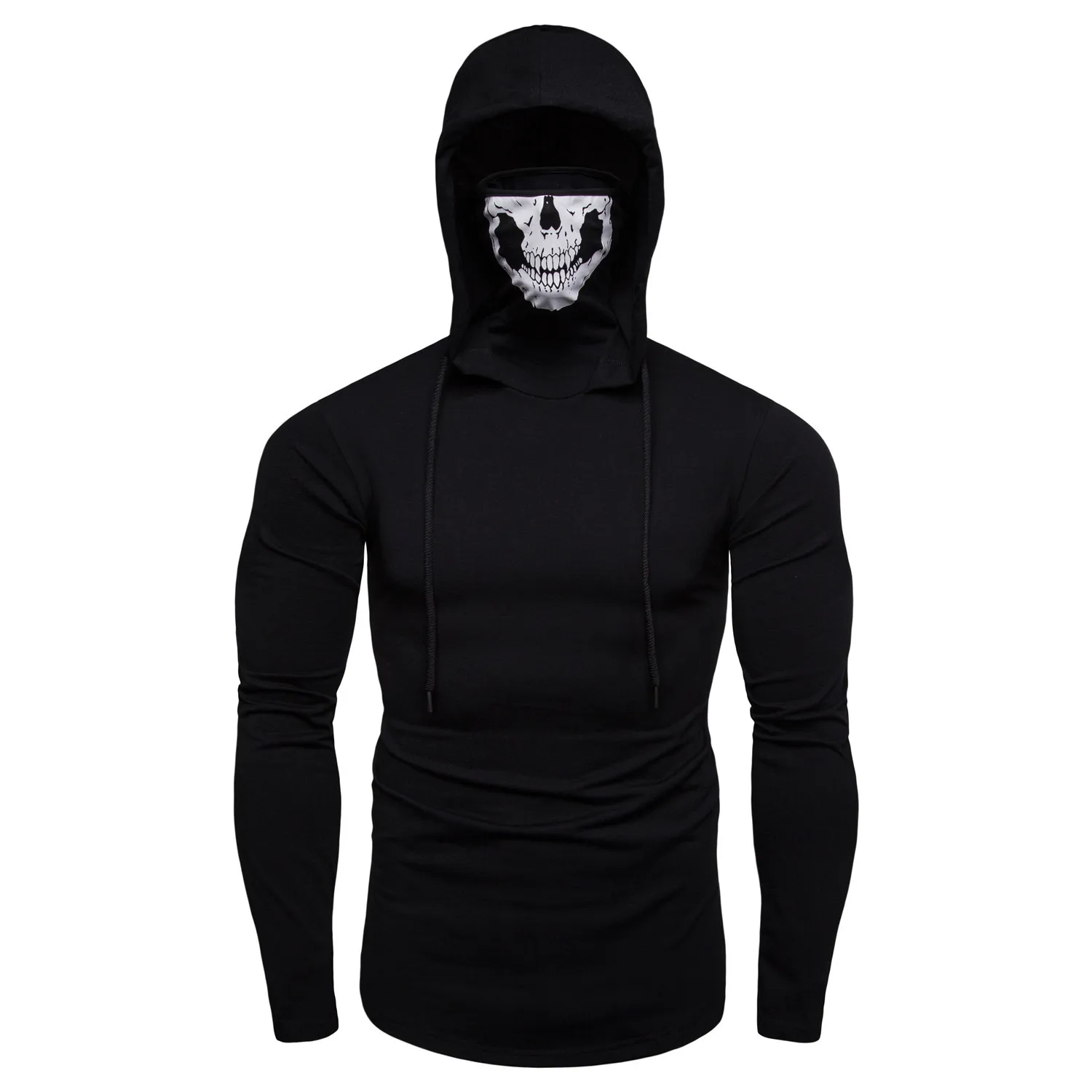 Новинка Осень-зима 2021, эластичный костюм ниндзя для фитнеса, мужской пуловер с капюшоном и принтом черепа, футболка с длинными рукавами, куртка