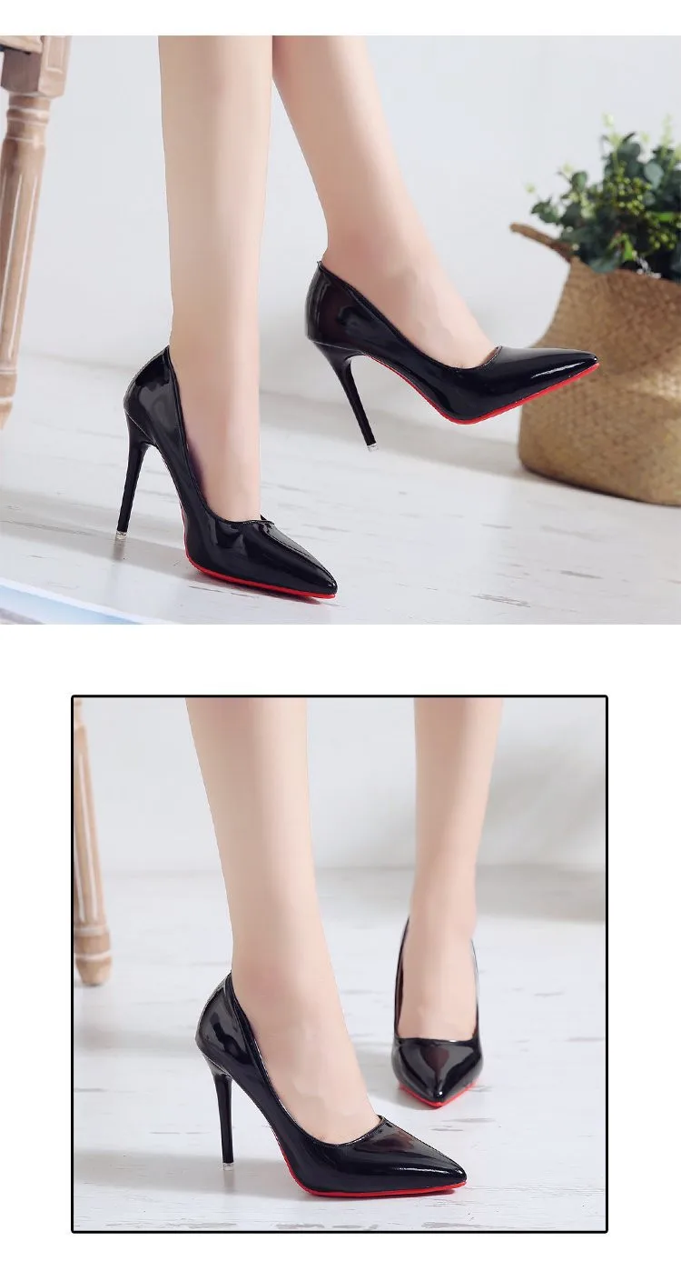 Женские туфли-лодочки 10 см, туфли-лодочки телесного цвета на высоком каблуке-шпильке из искусственной кожи, туфли-лодочки с острым носком в Корейском стиле, черные вечерние туфли для работы