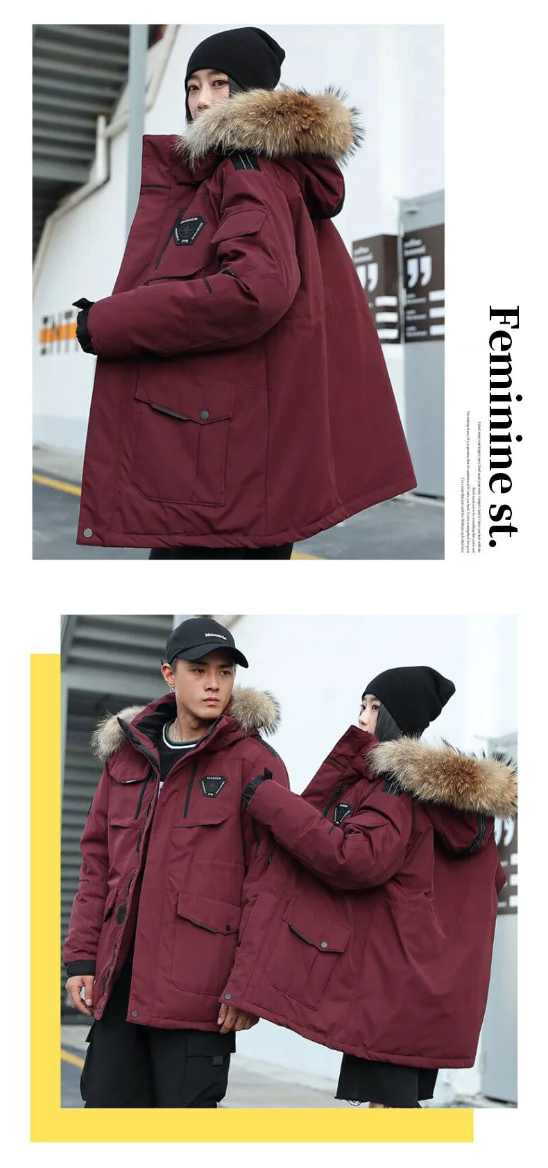 Мужская парка средней длины, пальто со съемным меховым воротником, ...