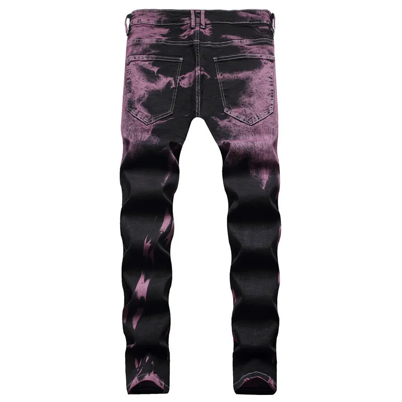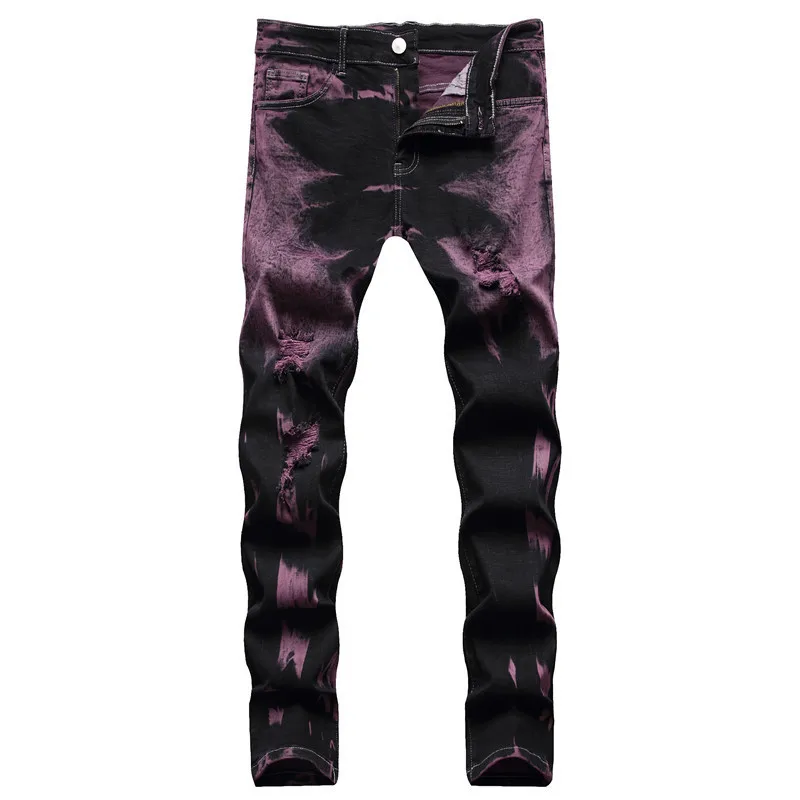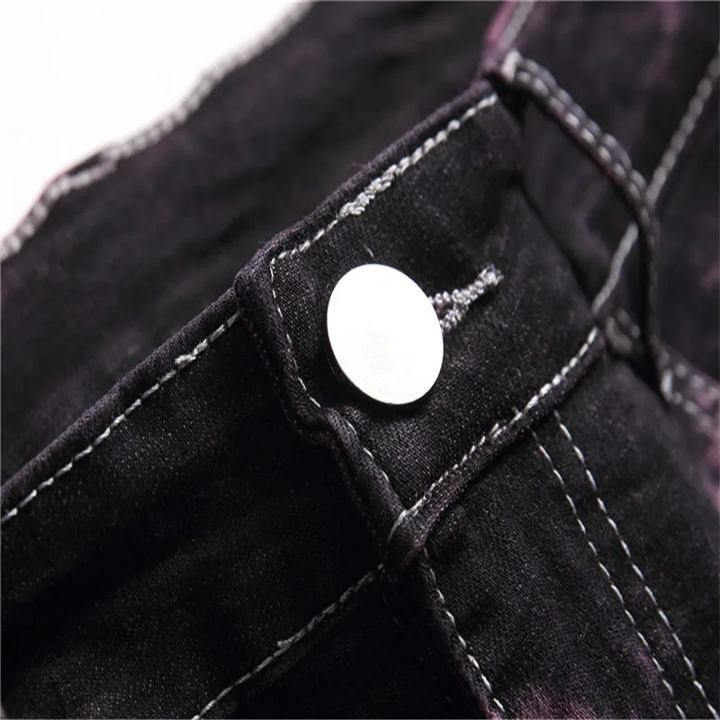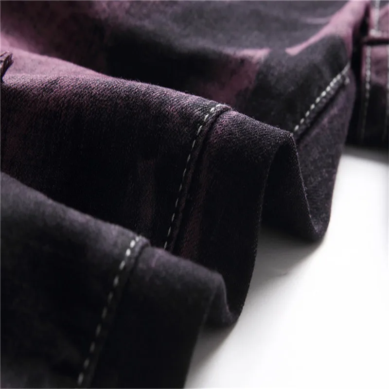 Светильник кие роскошные мужские обтягивающие джинсовые брюки, высокое качество, рваные, украшенные дырками, фиолетовые джинсы, уличная мода, пикантные повседневные джинсы