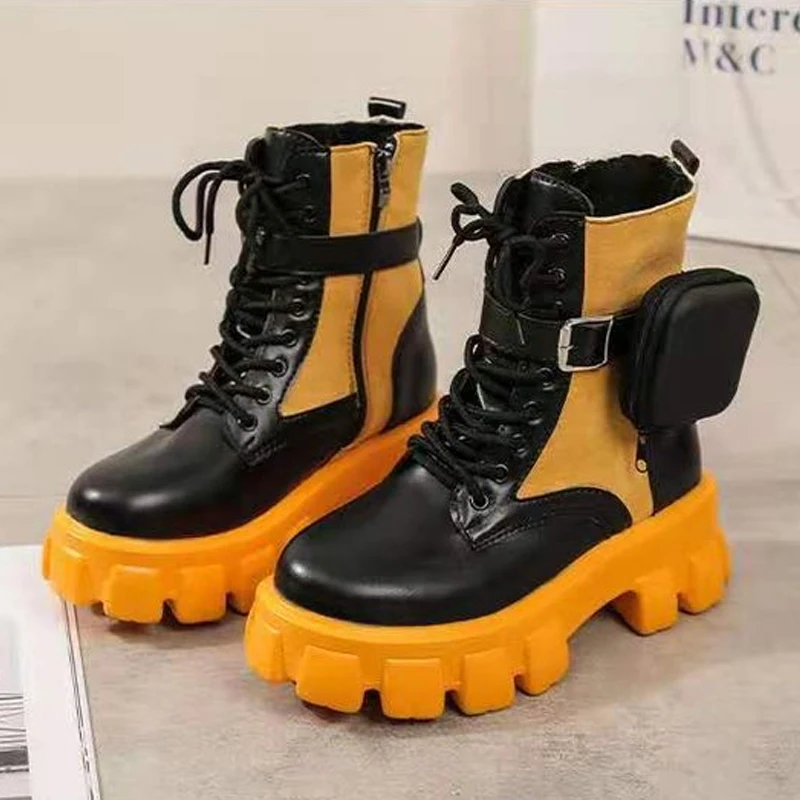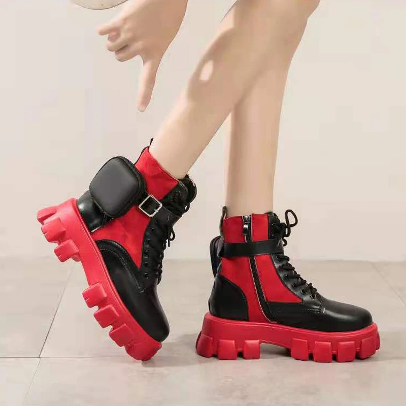 Женские высокие ботинки, ботильоны на платформе со шнуровкой и ремешком с пряжкой, женская обувь для осени и зимы 2021