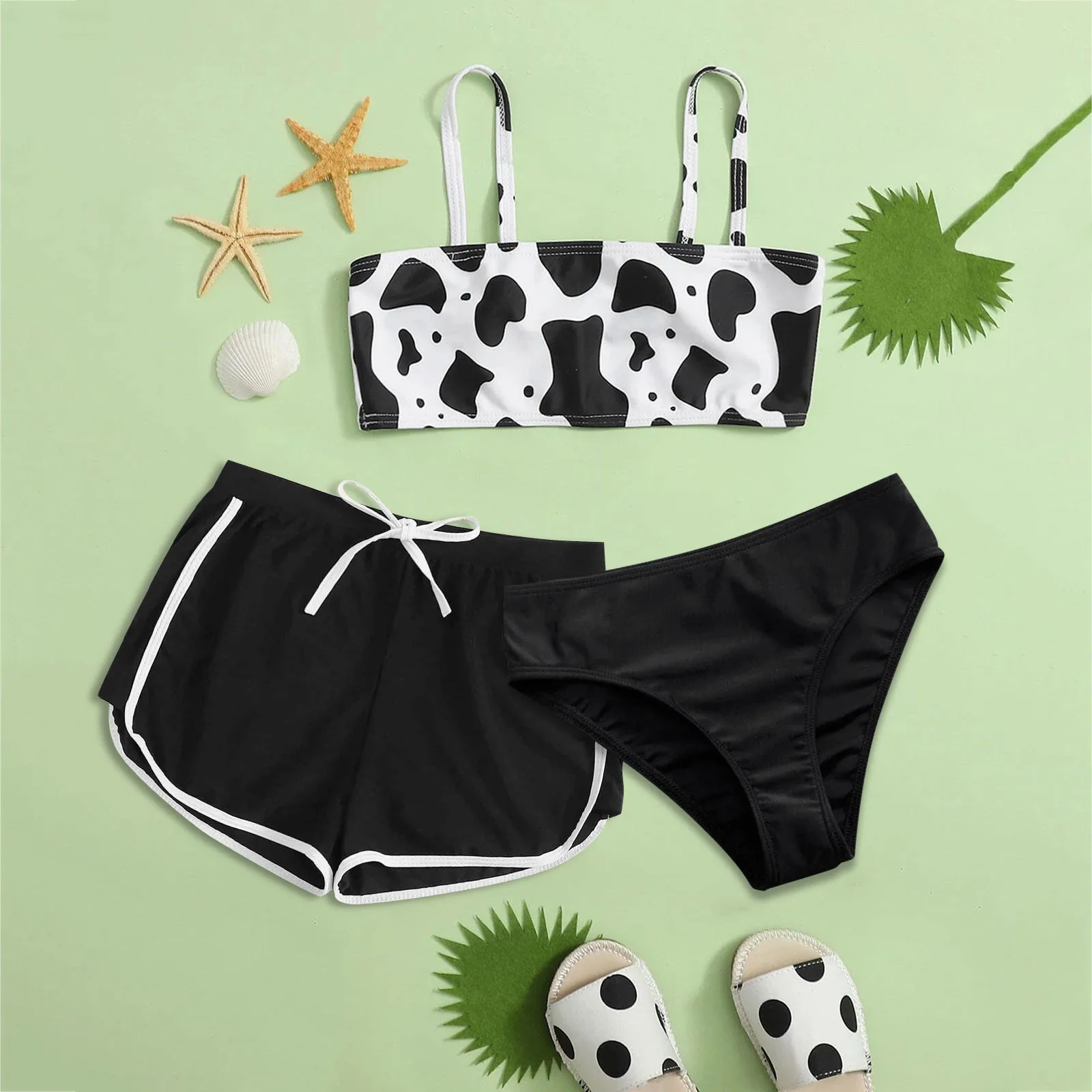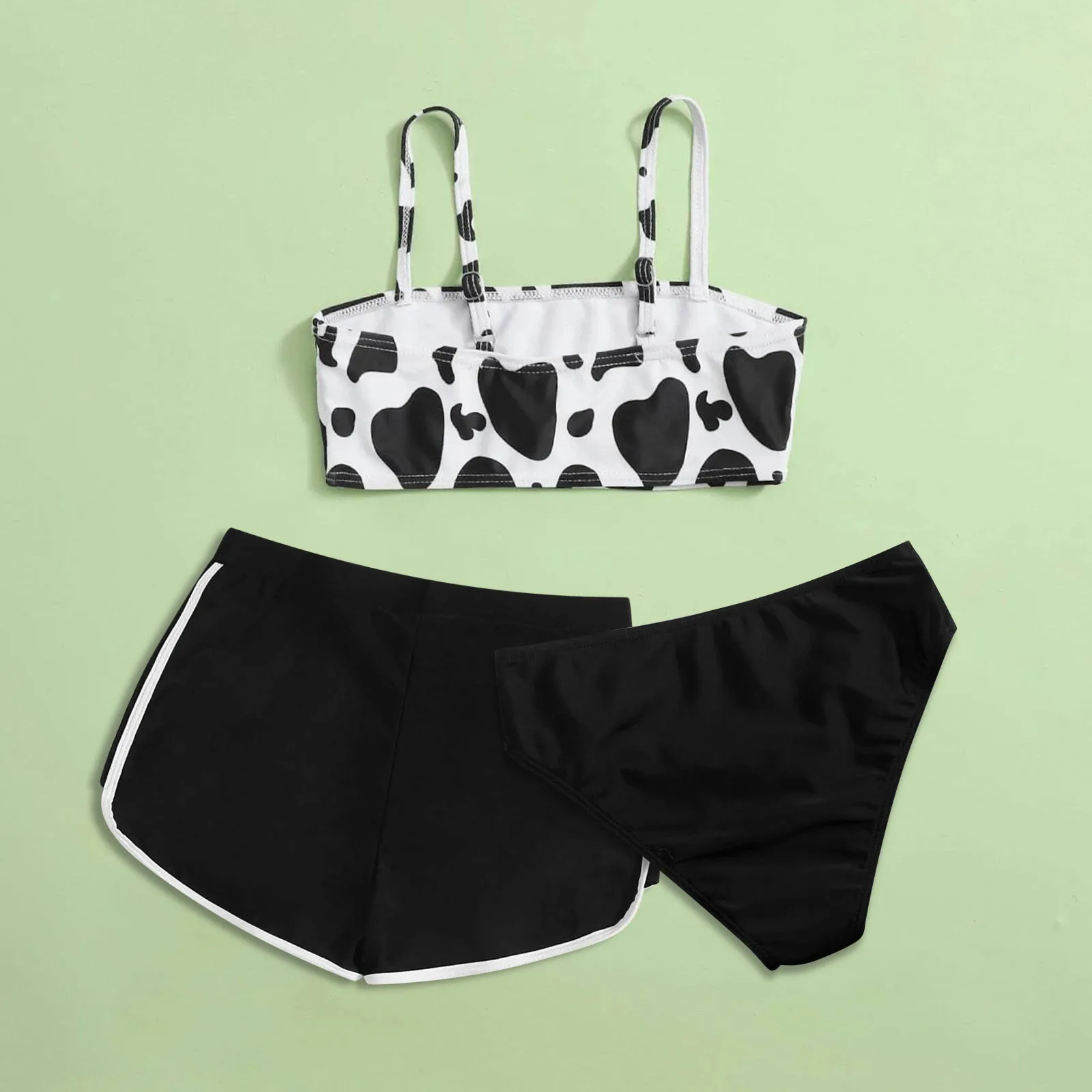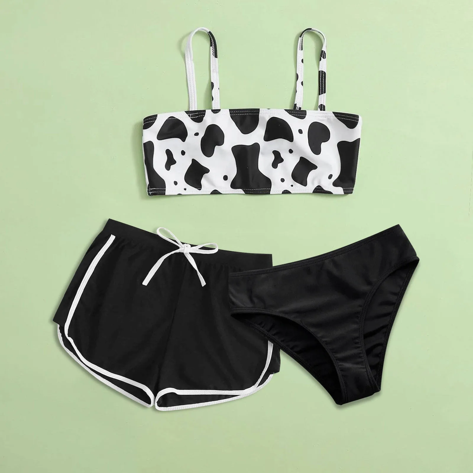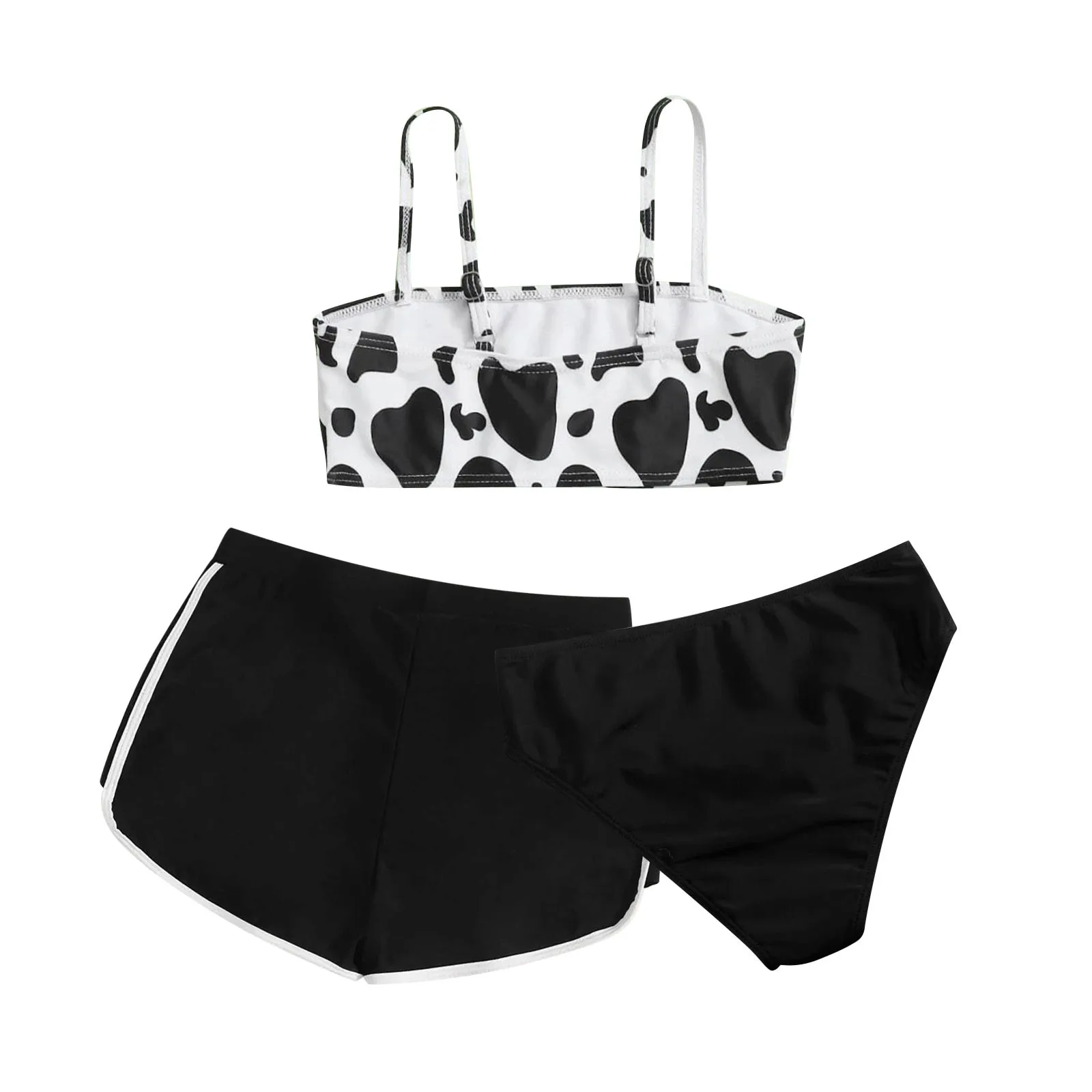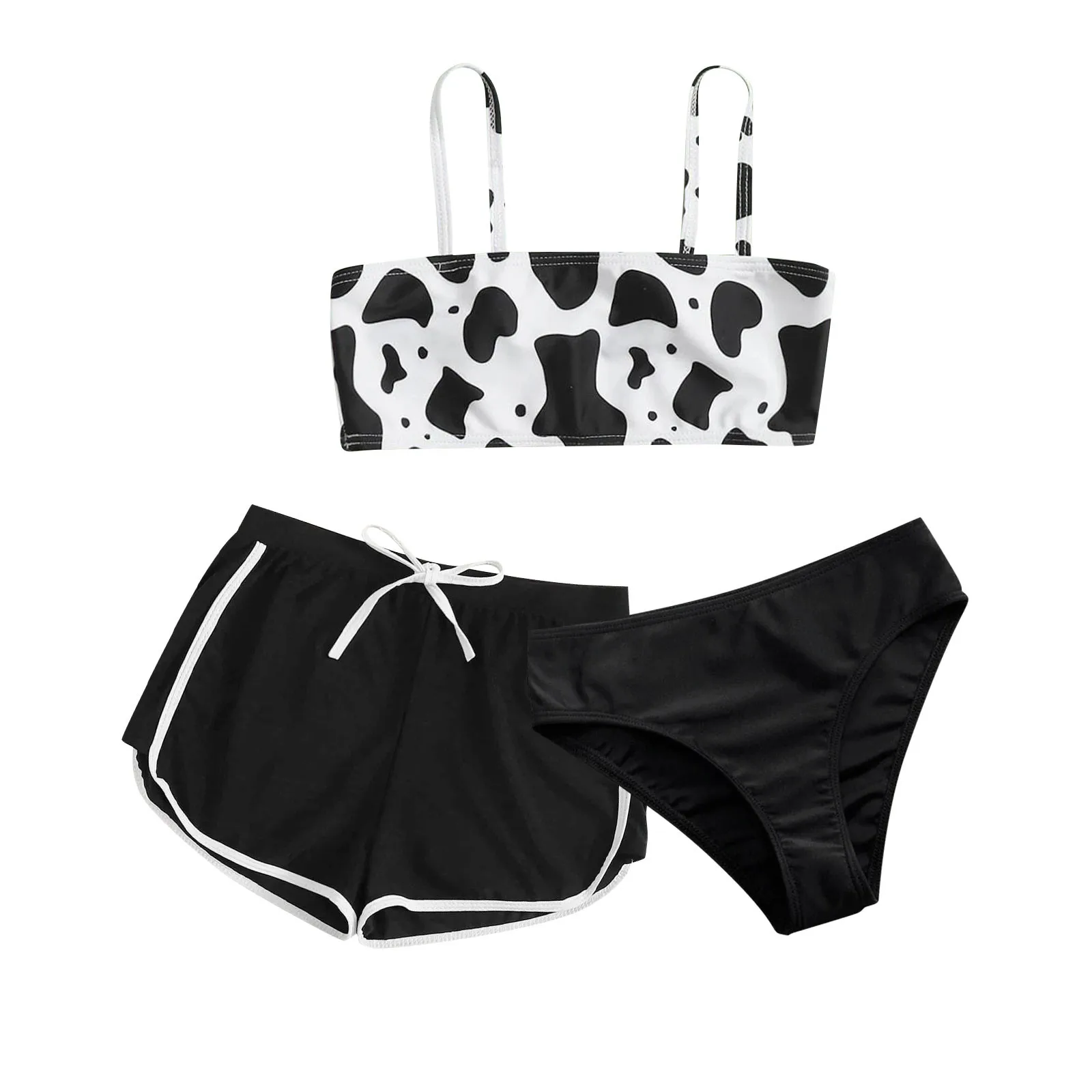 Купальник TELOTUNY для девочек, Новинка лета 2021, милый купальник-тройка с принтом в виде коровы, с перекрестными лямками на спине, женская пляжная одежда