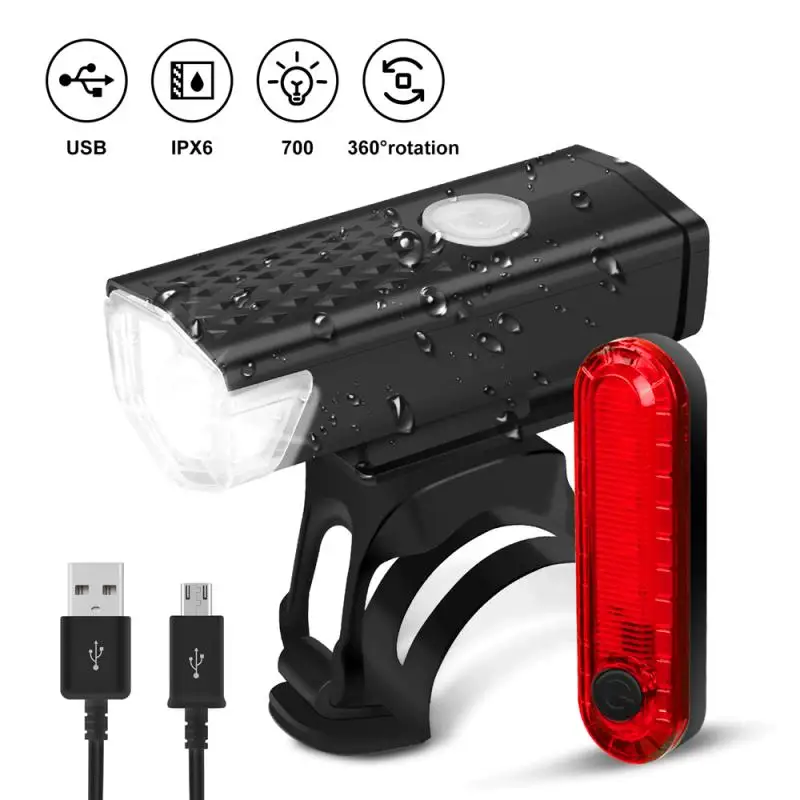 Светильник фонарь с зарядкой от USB, фара и задсветильник онарь для горного велосипеда, передний задний фонарь, Аксессуары для велосипеда