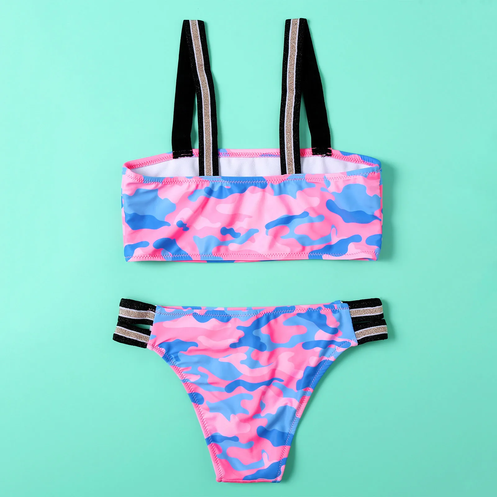 Детский Камуфляжный Купальник для девочек; Купальник-бикини; Комплект летней одежды