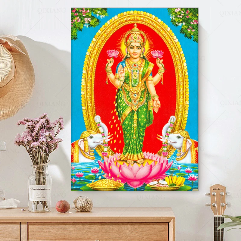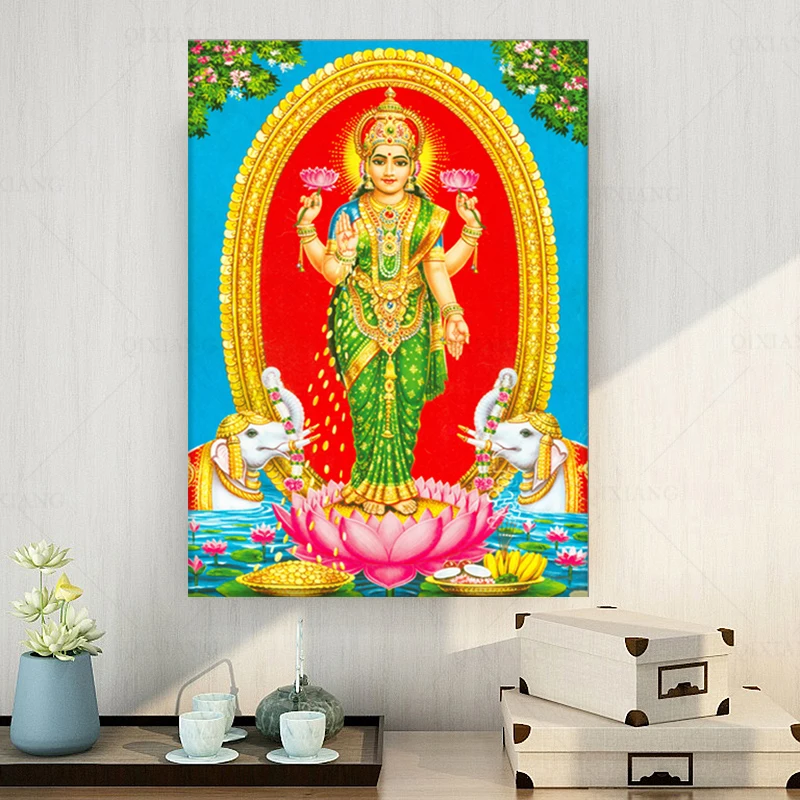 Индийская религия Shri Lakshmi Devi Saraswati Devi Ganesh холст худ...