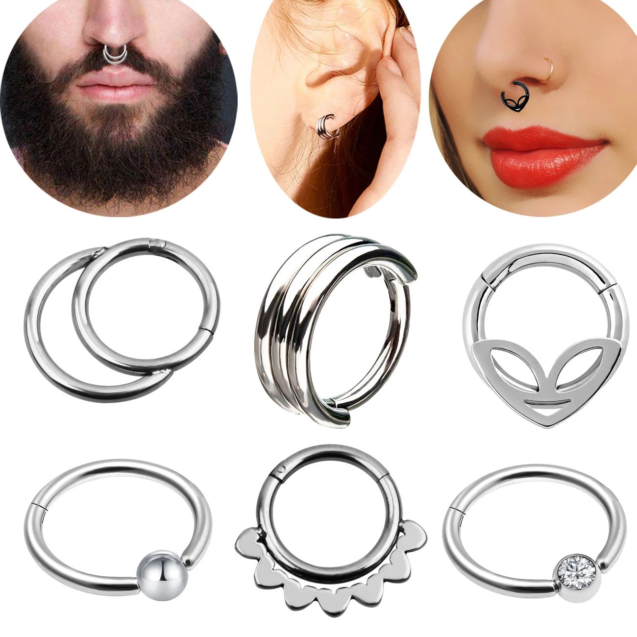 Кольца для пирсинга носа унисекс, Двухслойное стальное кольцо с сег...